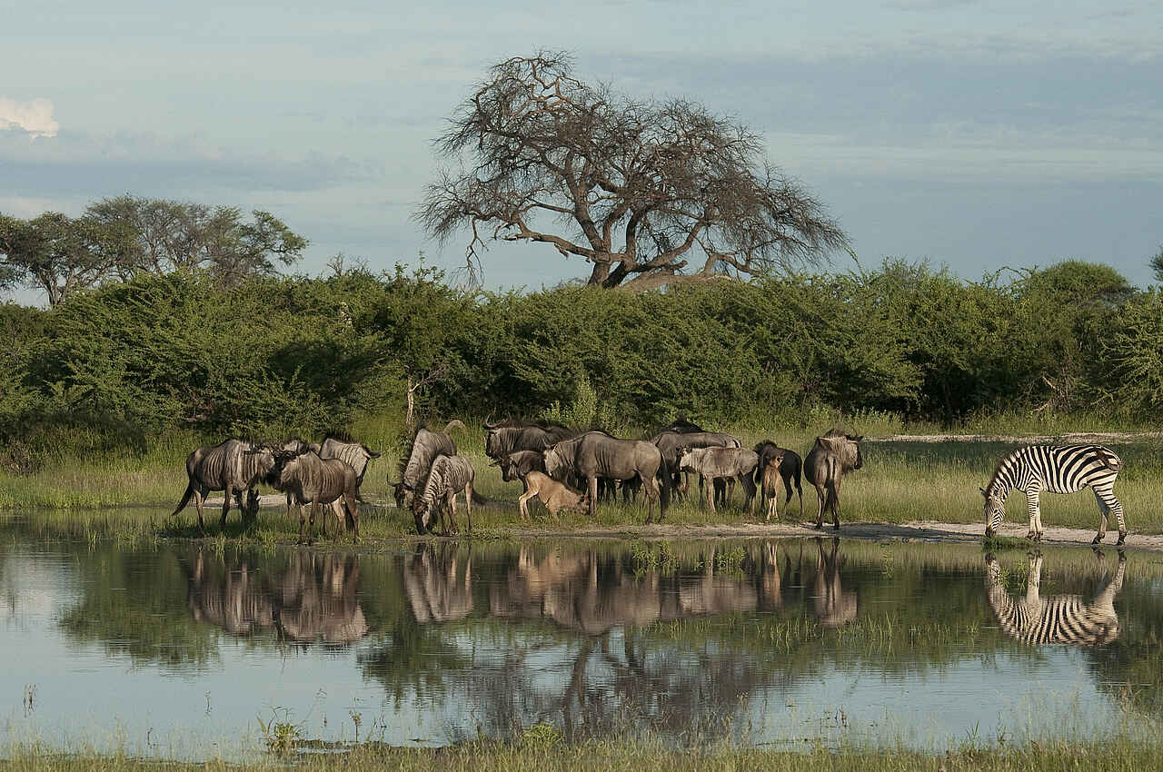 Das Chitabe Lediba Camp liegt im Okavangodelta in Botswana in einem großen privaten Konzessionsgebiet am Rand des Moremi Game Reserve. Ein regelmäßig besuchtes Wasserloch in unmittelbarer Nähe bietet bereits vom Safaricamp aus gute Möglichkeiten zur Tierbeobachtung. Das kleine, persönlich geführte Camp schafft eine entspannte Atmosphäre und eignet sich besonders für Familien oder gemeinsam reisende Freunde, die Wert auf Flexibilität und einen ungezwungenen Aufenthalt legen. Pirschfahrten am Morgen, am Nachmittag und am Abend eröffnen sehr gute Chancen auf Begegnungen mit Löwen, Leoparden und weiteren Raubtieren im Okavangodelta.