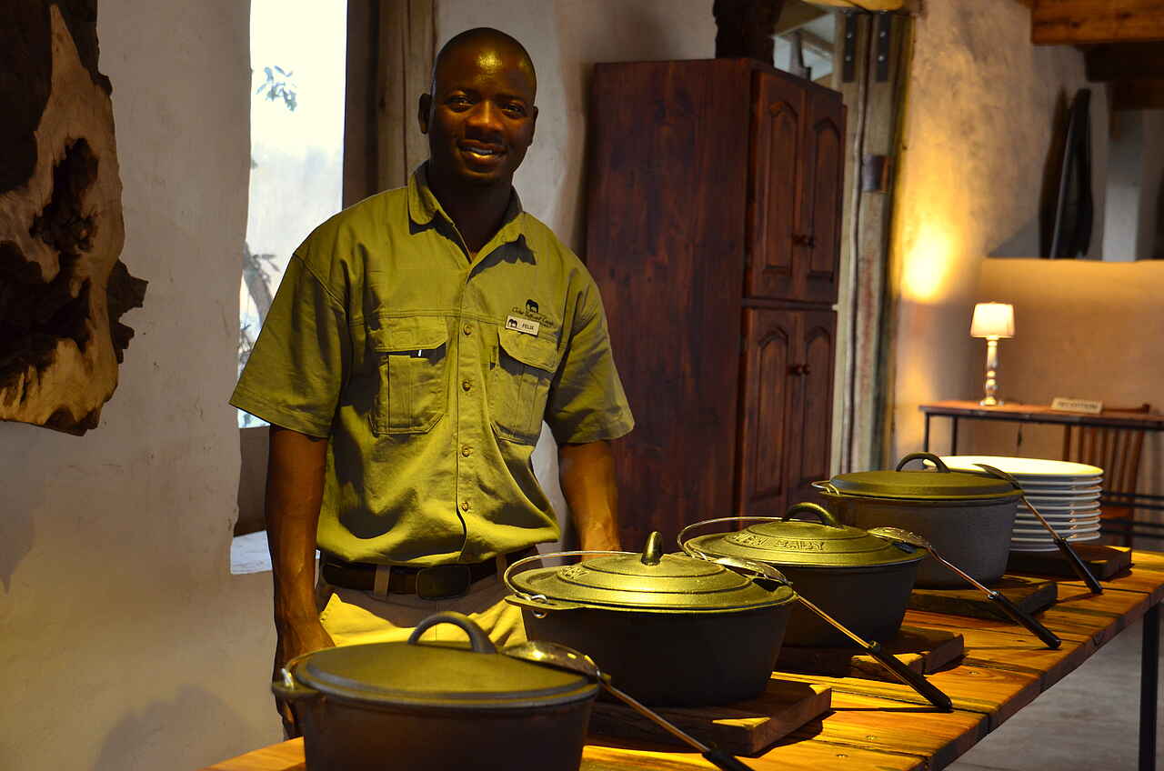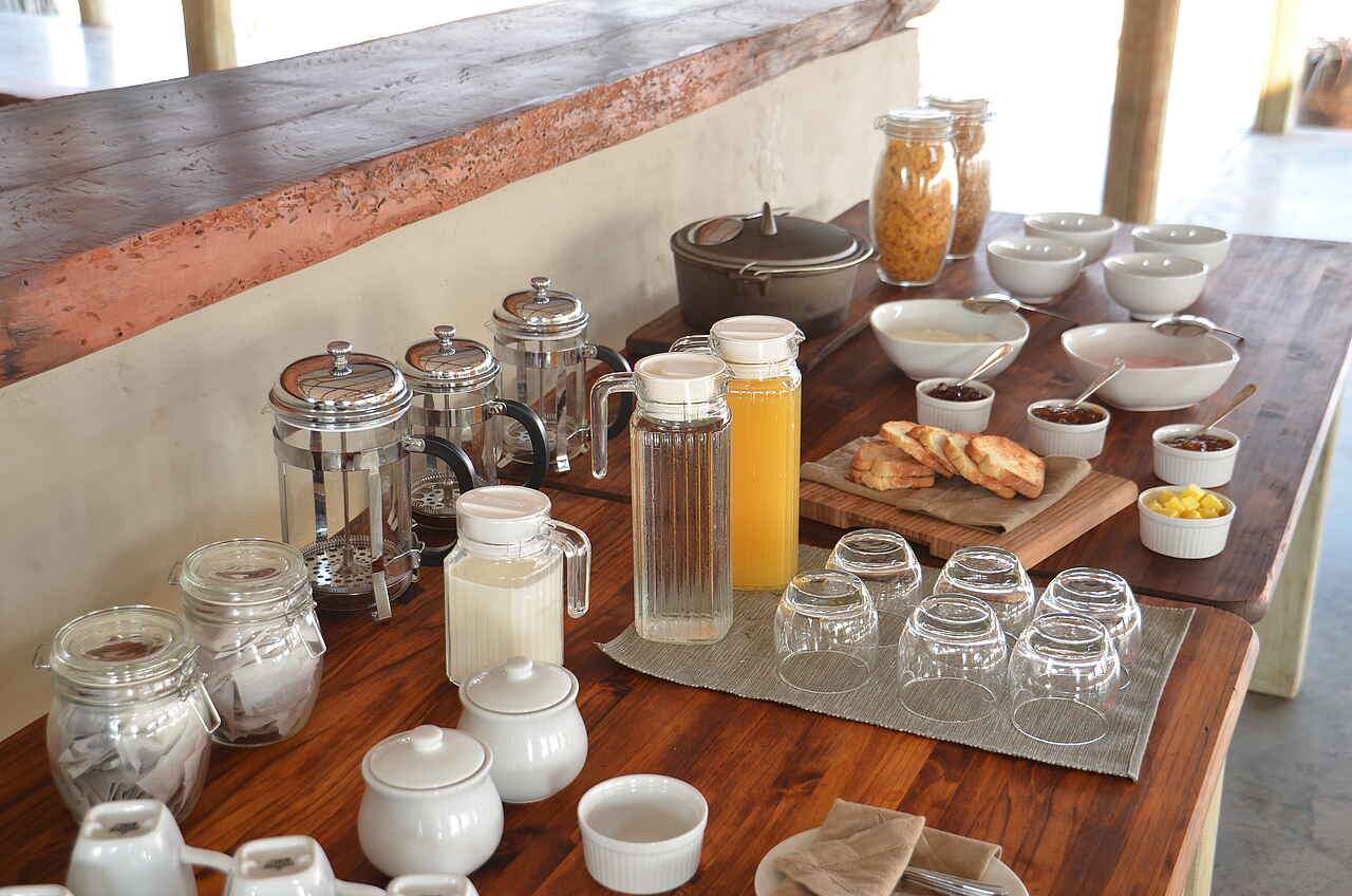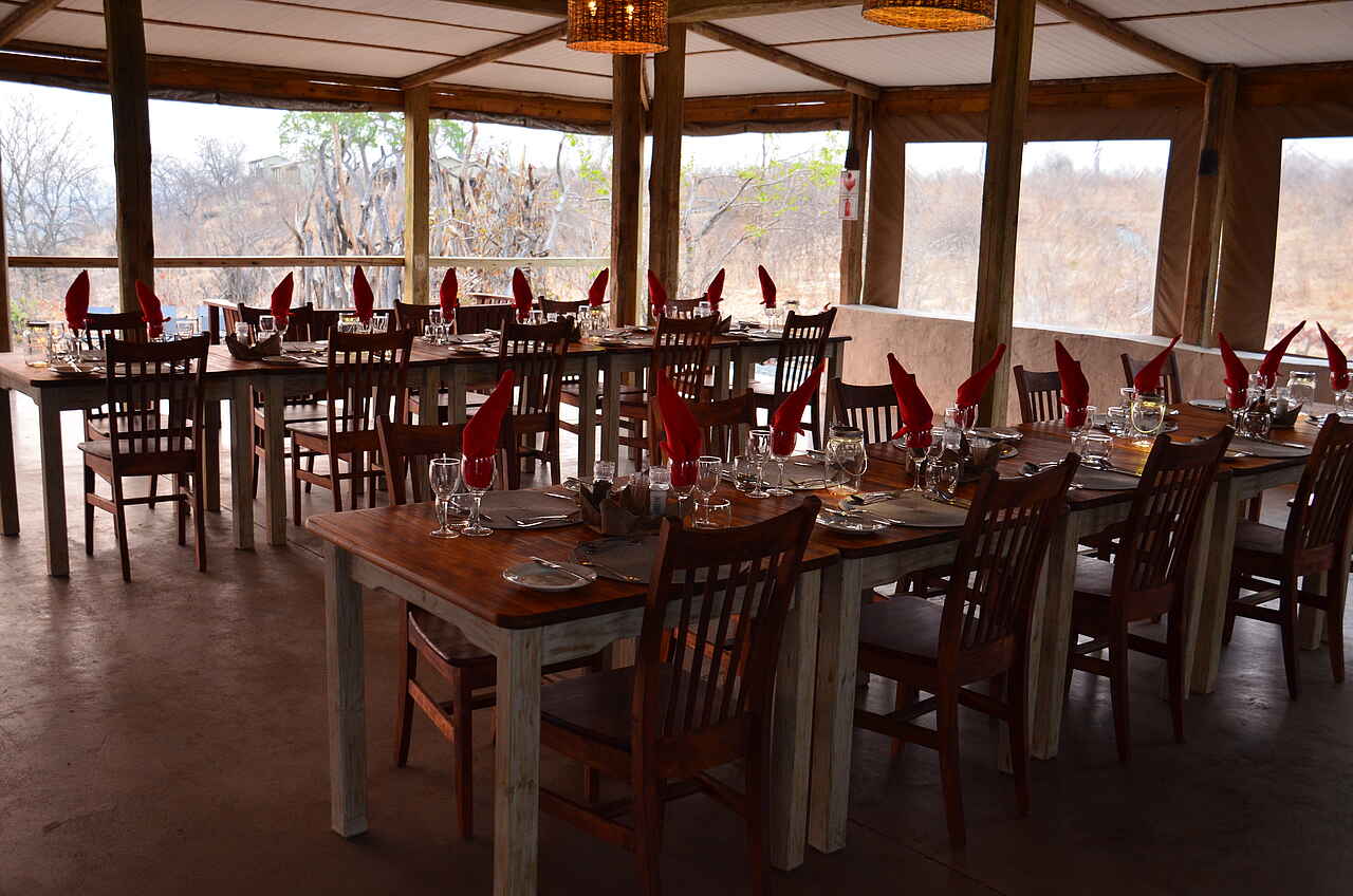 Vollpension: Alle 3 Mahlzeiten werden zusammen mit den anderen Gästen im Hauptbereich der Anlage eingenommen. Speisesaal im Inneren oder aber auf der weitläufigen Veranda. Im Chobe Elephant Camp sind alkoholfreie, sowie selektierte alkoholische Getränke inklusive (Premium-Marken und importierte Marken exkl.).