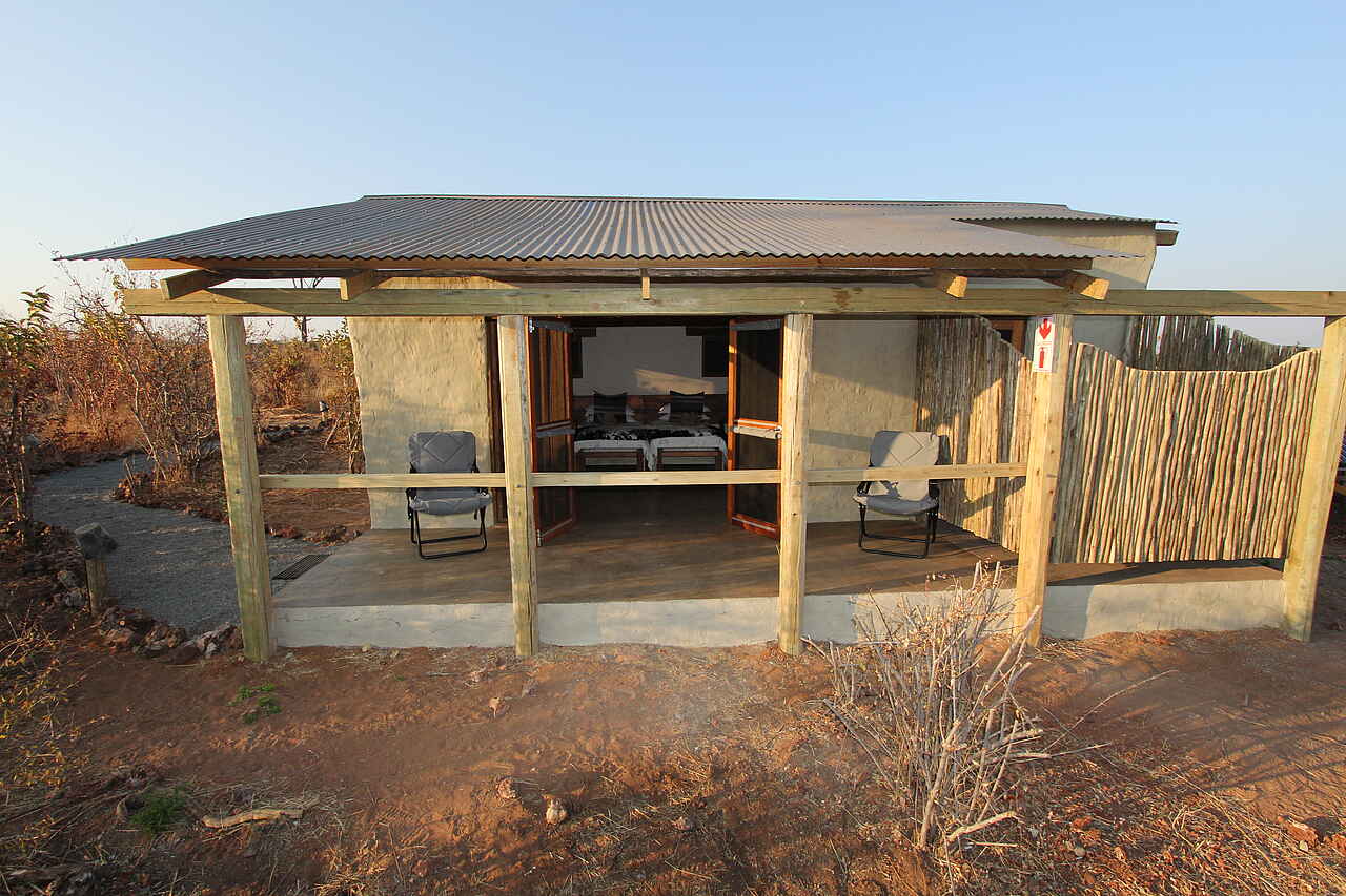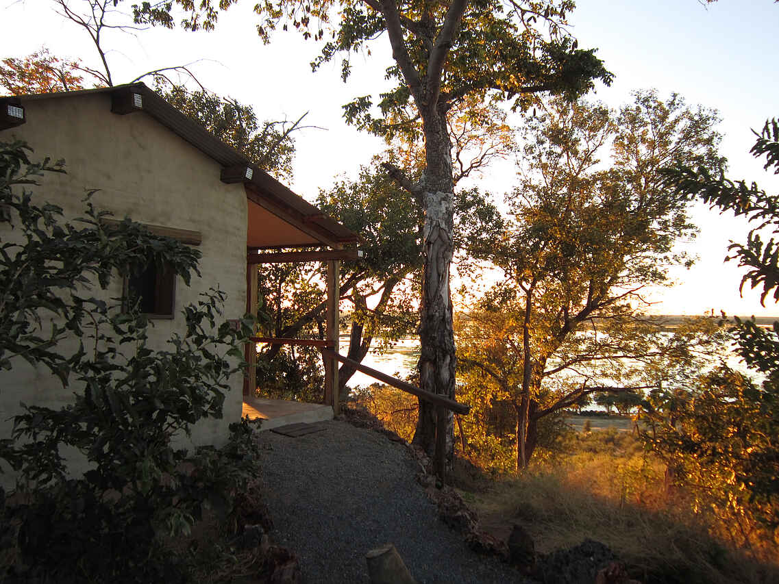 Naturbelassene Pfade vom Hauptgebäude zu den verschiedenen Chalets des Camps. 10 Standardchalets und eine Suite, allesamt mit Ausblick auf die Chobe Riverfront und im Farmhouse-Stil. Verwendung natürlicher und nachwachsender Baustoffe. Klimaregulierung der Zimmer durch Wände mit hohem Sandanteil. Schlafsaal mit Zugang zur privaten Terrasse, En-Suite Badezimmer, sowie Outdoor-Dusche. Natürliches Wohnerlebnis im Einklang mit der Natur und hohem Komfort. Wäscheservice inkl.