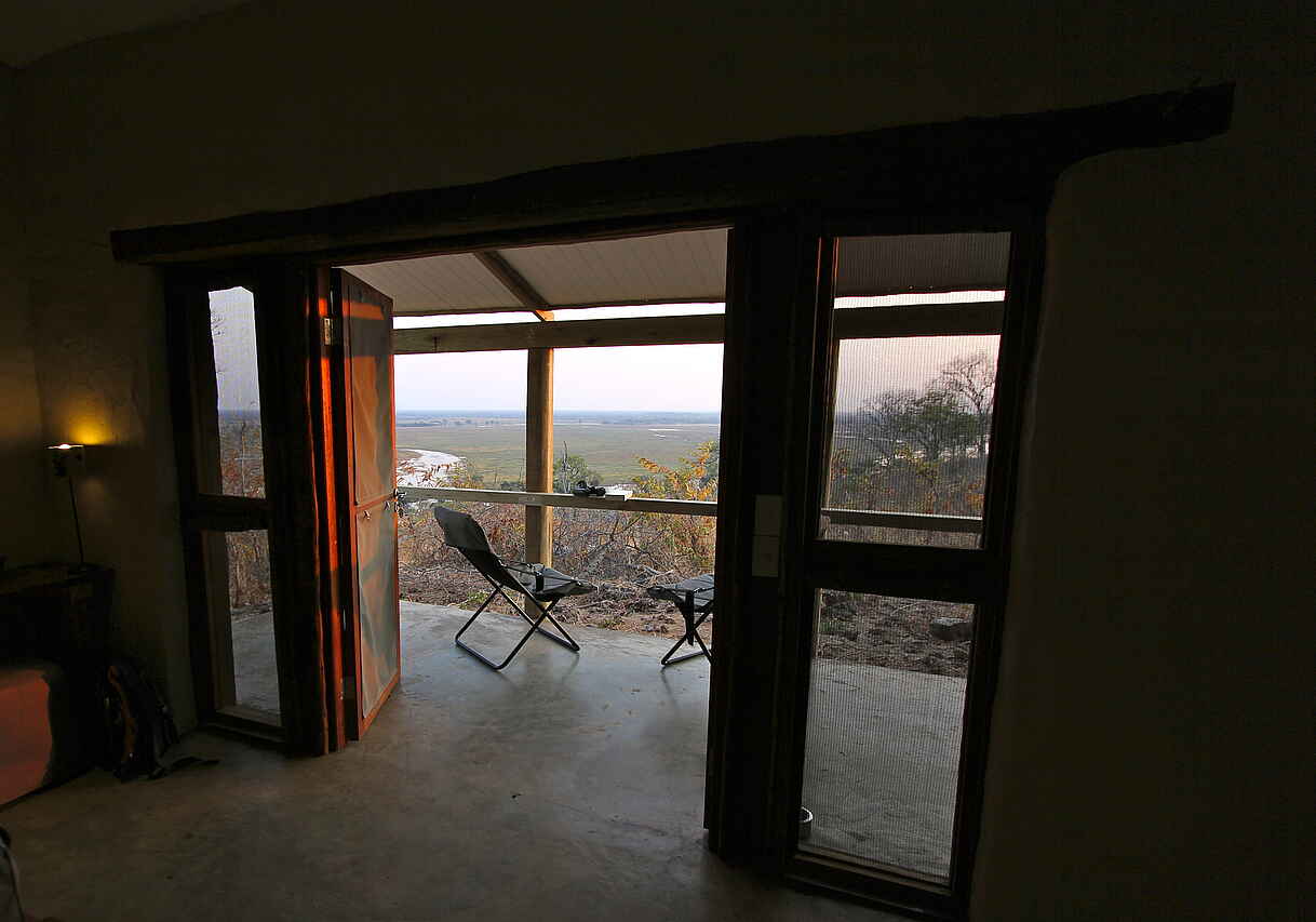 Südliches Flussufer des Chobe River, nahe Chobe National Park, an der Grenze zu Namibia. Auf einer Klippe erbaut mit weitläufigen Blick über die Landschaft und die Chobe Riverfront. Der Chobe National Park ist nur wenige Minuten vom Camp entfernt.