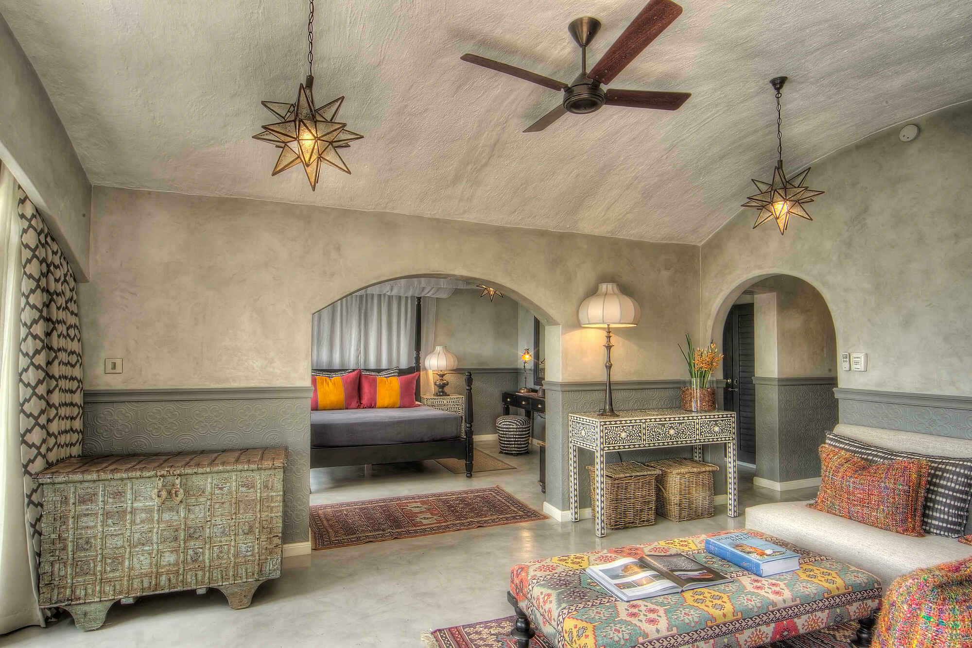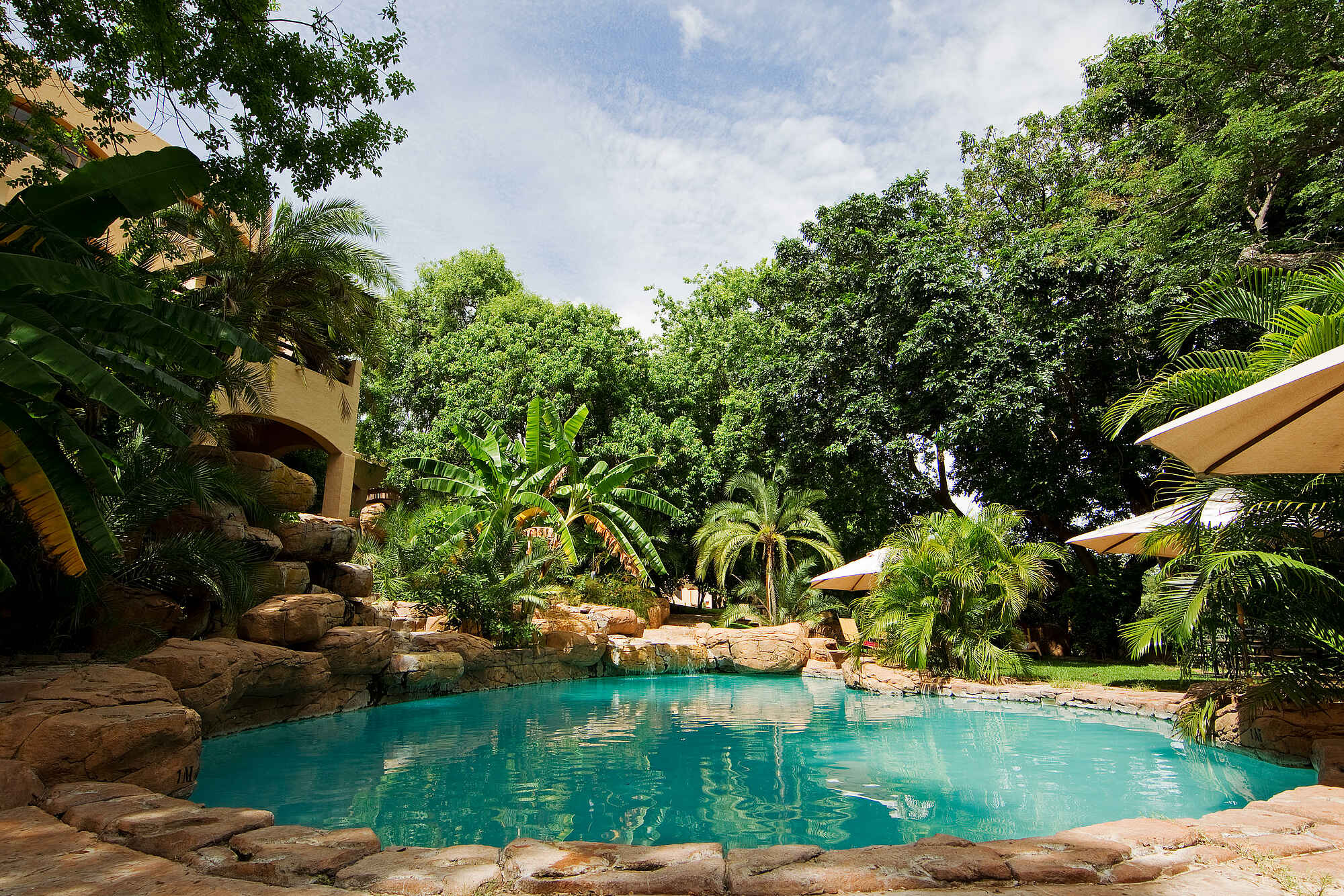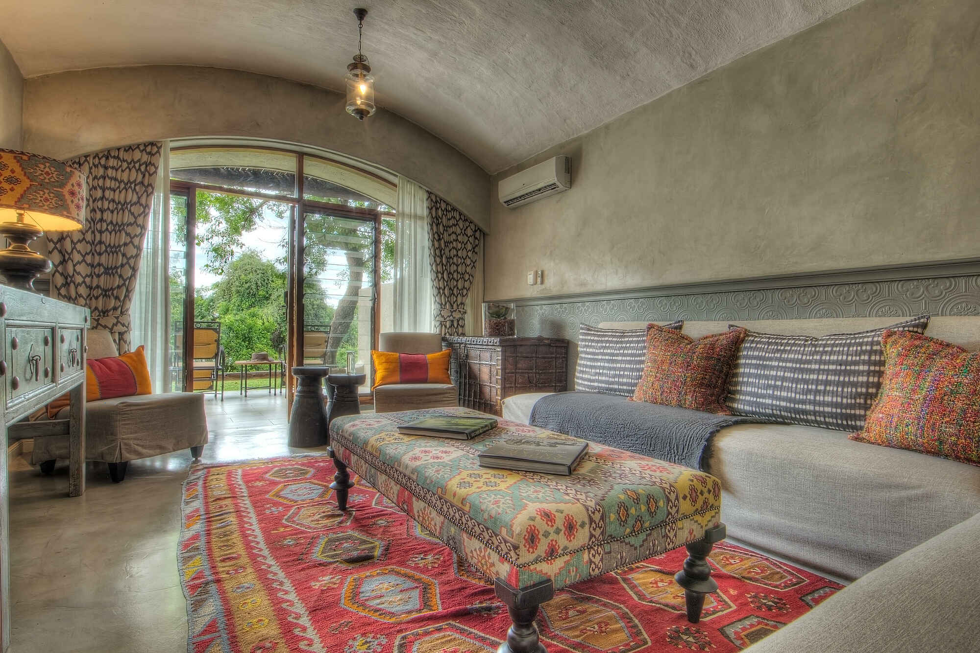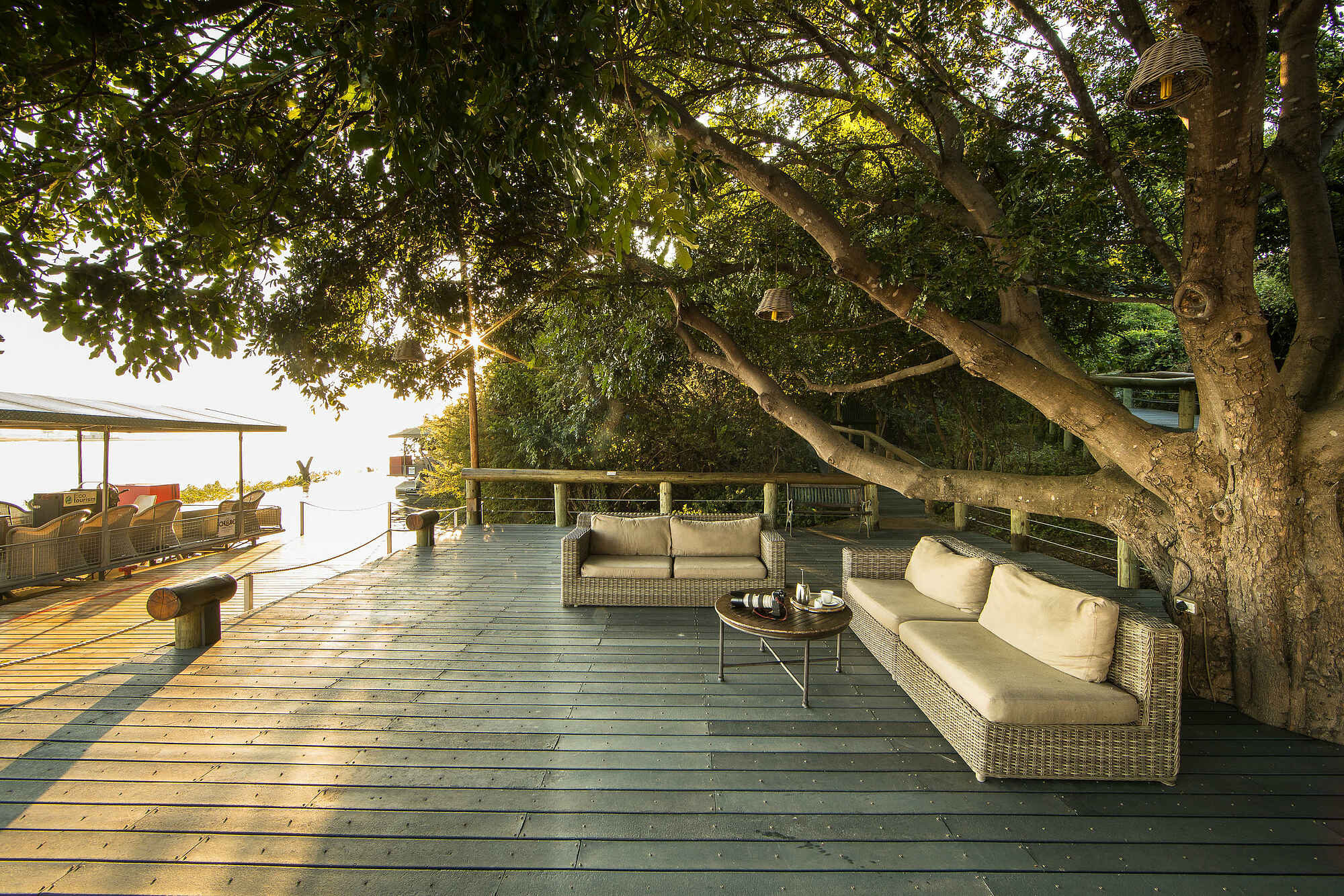 Der zentrale Bereich der Chobe Game Lodge ist offen und großzügig gestaltet. Mehrere Lounges bieten bequeme Sitzmöglichkeiten, die sich ideal für Gespräche oder ruhige Momente zwischen den Aktivitäten eignen. Das Restaurant serviert seine Mahlzeiten in warmem Licht auf der Terrasse oder im luftigen Innenraum und schafft den passenden Rahmen für lange Abende am Fluss. Der Poolbereich lädt mit breiten Liegen und viel Platz zum Erholen ein, während die umliegende Flusslandschaft das Gefühl von Weite verstärkt. Eine kleine Boutique, ein gut ausgestatteter Fitnessraum und ein Spa mit wohltuenden Anwendungen ergänzen das Angebot. Für ruhige Stunden steht eine Bibliothek zur Verfügung, und der Cigar Room sorgt für einen stilvollen Ausklang des Tages.