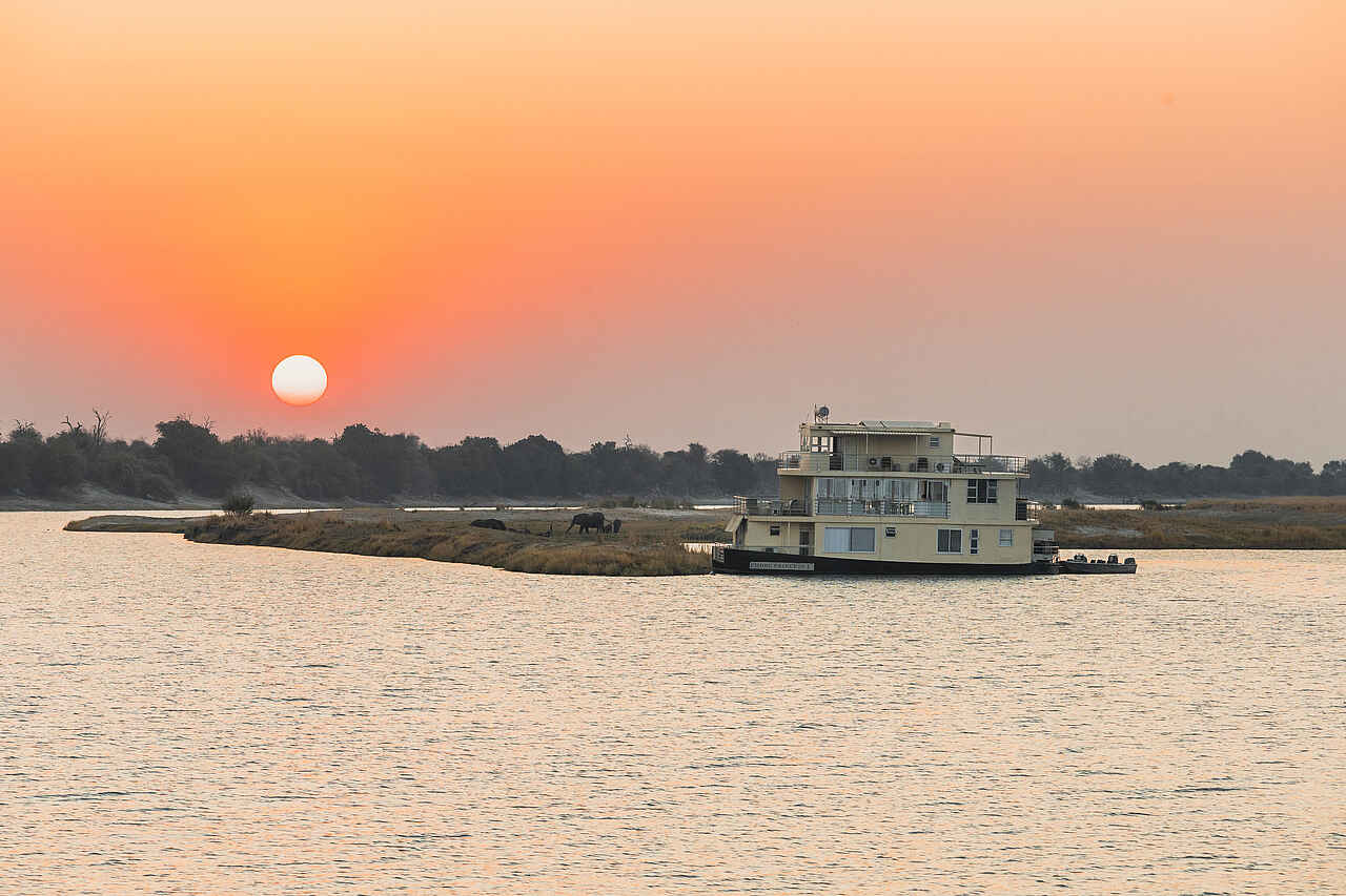 Die Chobe Princesses bewegen sich genau wie die Zambezi Queen entlang der Wasserwege im Sumpfgebiet des Chobe Nationalparks am Namibischen Caprivizipfel an der nördlichen Grenze zu Botswana.