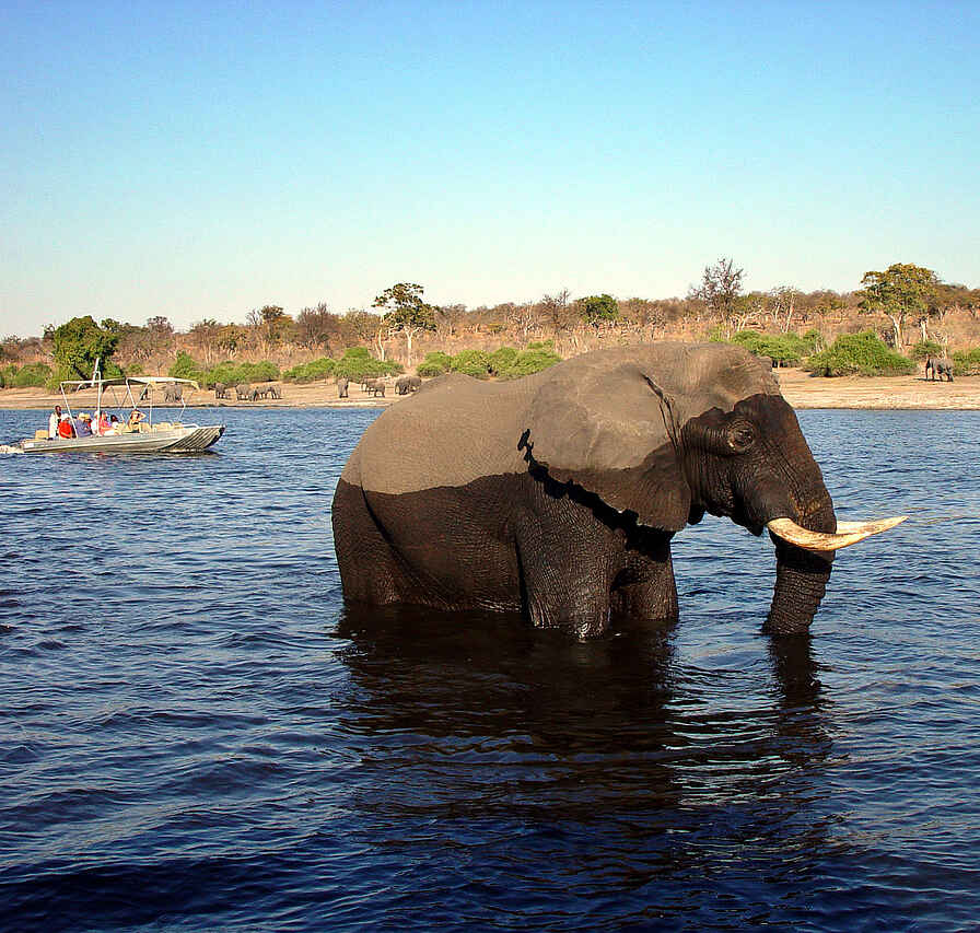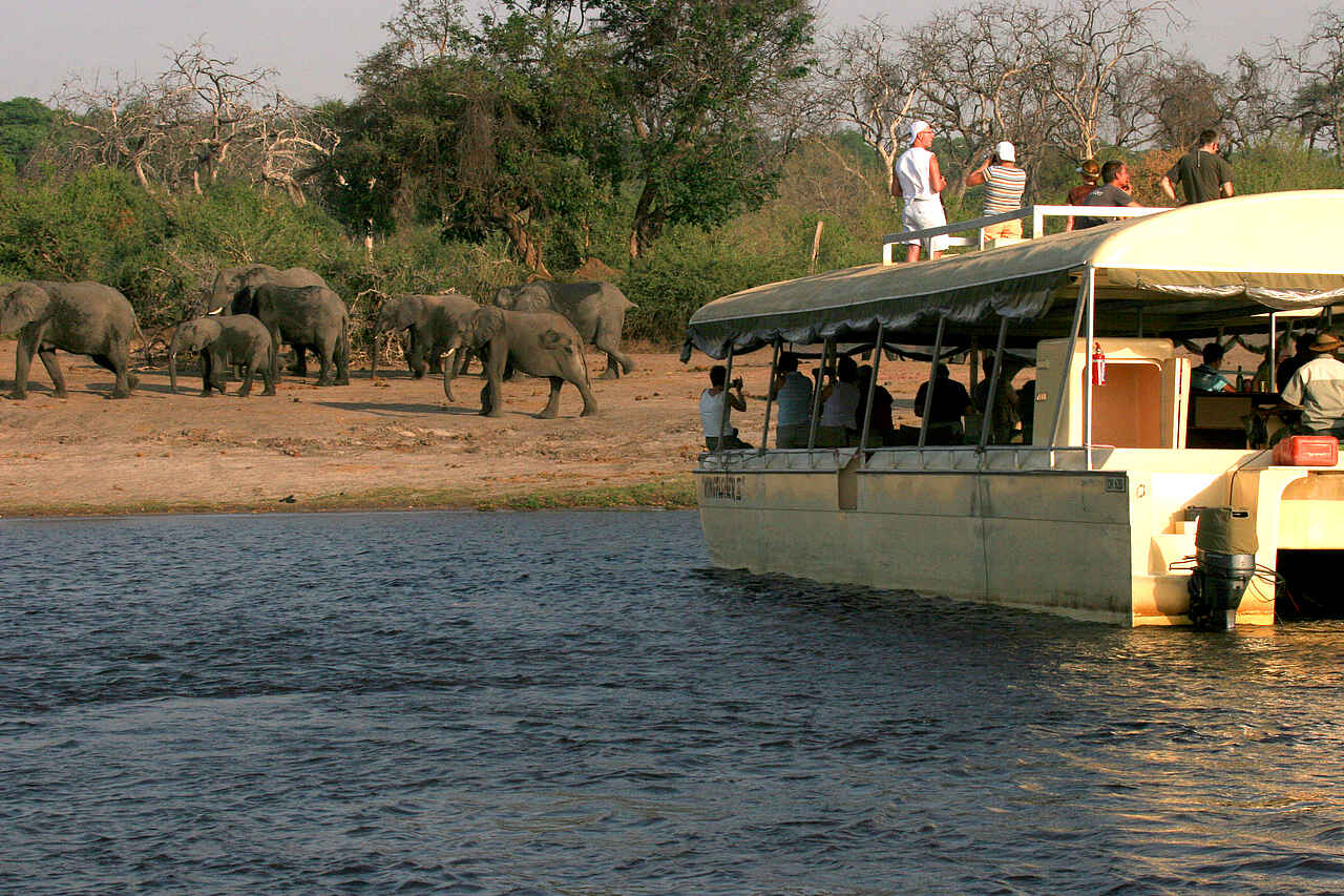 Der Chobe-Nationalpark ist berühmt für seine großen Elefantenherden, die sich besonders von August bis November nachmittags am Flussufer versammeln, um zu trinken. Daneben sind zahlreiche andere Wildtiere zu beobachten, darunter Löwen, Leoparden, Büffel, Wildhunde, Giraffen, Pukus, Wasserböcke, Kudus, Warzenschweine, Zebras, Paviane, Nilwarane, Krokodile, Nilpferde und Felsenpythons. Vogelliebhaber kommen ebenfalls auf ihre Kosten, da der Park eine große Vielfalt an Wasservögeln beherbergt, wie z. B. Adler, Reiher, Enten, Gänse, verschiedene Storchenarten und Eisvögel.