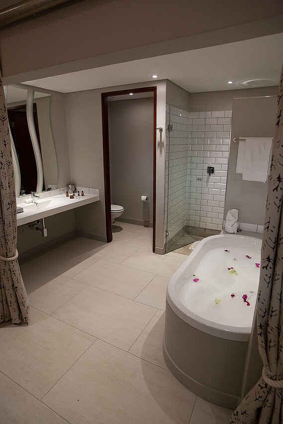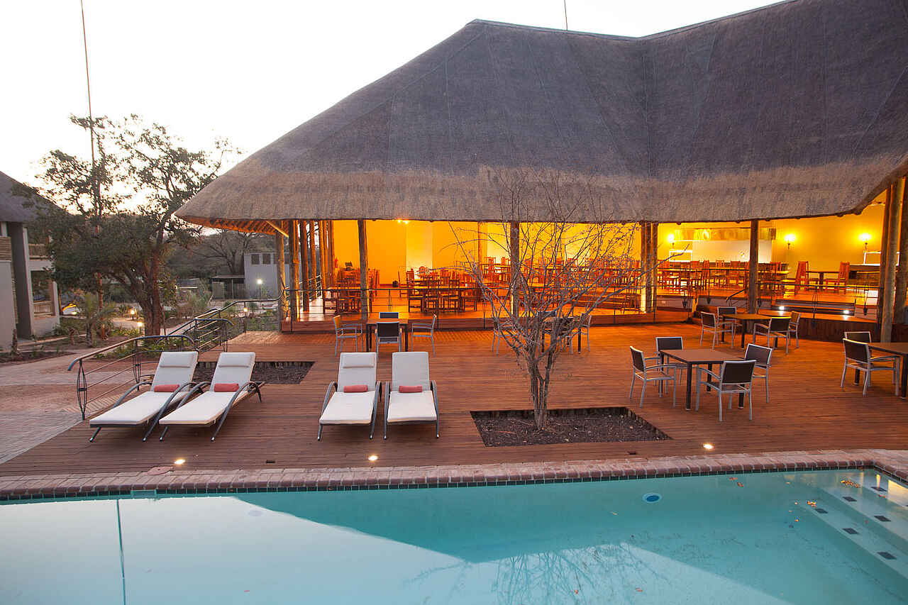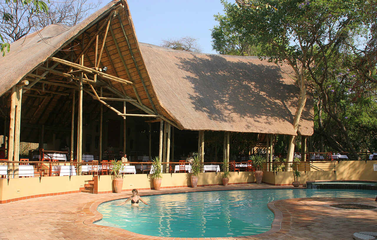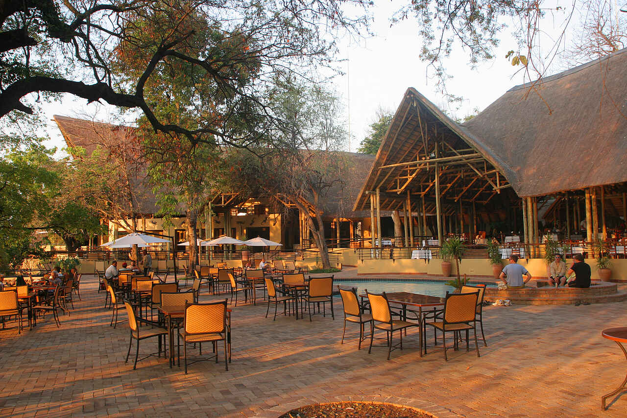 Die Gemeinschaftsbereiche beider Lodges sind großzügig und luftig gestaltet und spiegeln einen authentischen afrikanischen Stil wider. Die einladenden Restaurants bieten eine breite Auswahl an kulinarischen Köstlichkeiten, während die Cocktailbars perfekt für entspannte Abende bei einem Sundowner-Drink sind. Souvenirläden laden zum Stöbern und Shoppen ein, und die Swimmingpools mit gemütlichen Lounge-Ecken bieten den idealen Ort zur Entspannung und Erfrischung. Kostenfreies WLAN steht in allen Bereichen zur Verfügung. Die Chobe Safari Lodge bietet darüber hinaus einen Wellnessbereich, in dem Gäste nach einem aufregenden Safaritag eine wohltuende Massage oder eine entspannende Behandlung genießen können.