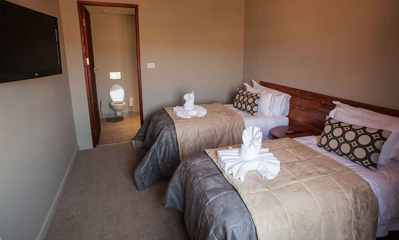 Die Chobe Bush Lodge verfügt über 42 Zimmer, darunter vier Familienzimmer mit zwei Schlafzimmern, die jeweils ein eigenes Badezimmer haben. Die Zimmer bieten einen modernen Buschstil mit zeitgemäßer Einrichtung und Design. Die Zimmer im Erdgeschoss haben eine gemütliche Veranda, während die oberen Zimmer Balkone mit Blick auf den Nationalpark bieten. Die geräumigen Zimmer verfügen über stilvolle offene Badezimmer WC und Dusche. Moskitonetze, Mini-Kühlschrank, Klimaanlage und Fernseher gehören ebenfalls zur Standardausstattung.