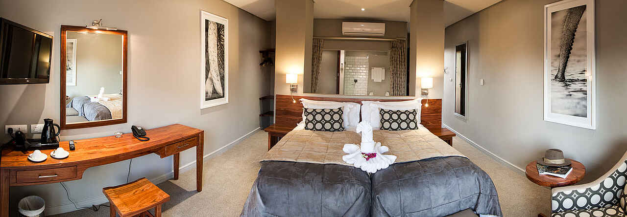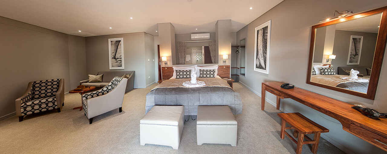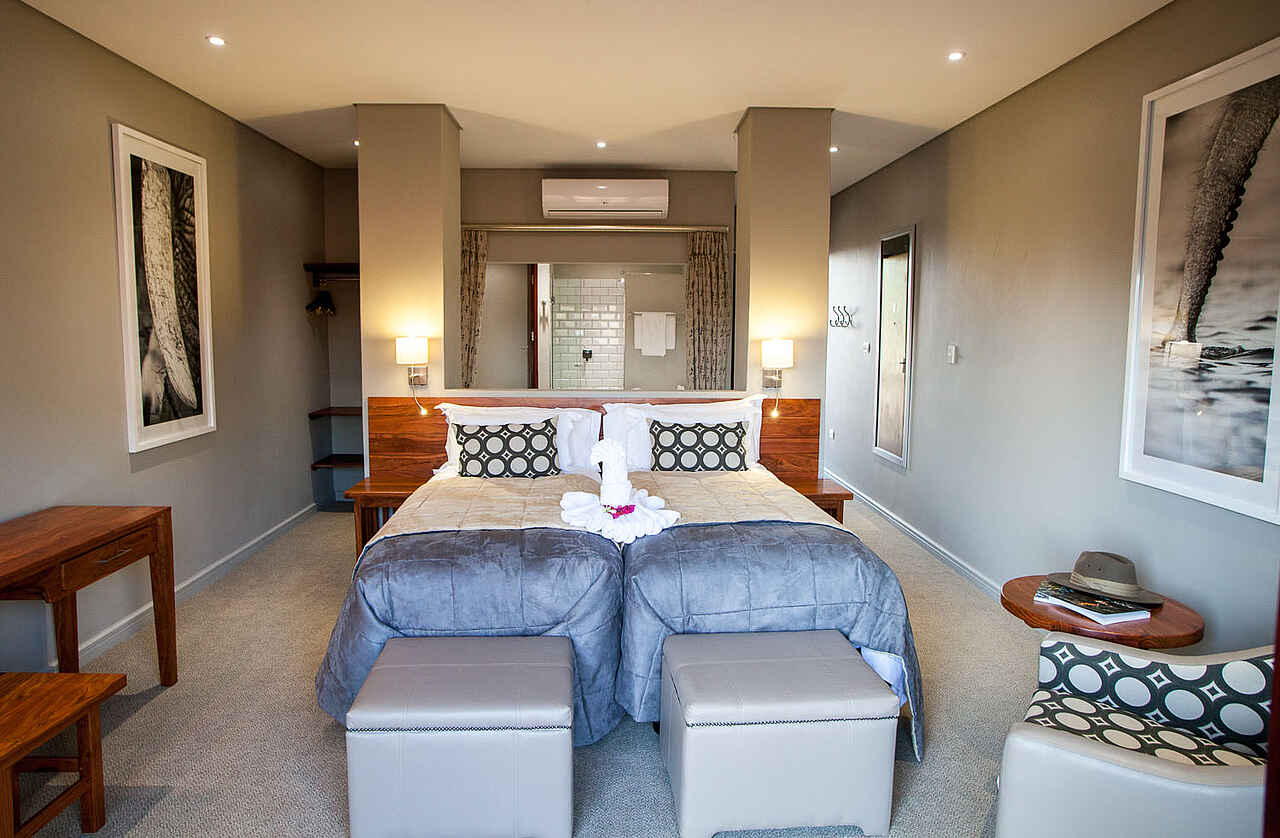 Entlang des Chobe-Flusses erstrecken sich die Unterkünfte der Chobe Safari Lodge, bestehend aus 68 individuell dekorierten Zimmern mit Blick auf das Flussufer und acht Rondavels (typische afrikanische Rundhäuser) mit Strohdächern. Einige der Zimmer sind für Familien geeignet und verfügen über separate Kinderzimmer mit Etagenbetten. Alle Zimmer sind mit eigenem En-suite-Badezimmer, Klimaanlage (außer in den Rondavels), Ventilatoren, Moskitonetzen, Mini-Kühlschrank und Satellitenfernsehen ausgestattet. Jede Unterkunft hat eine eigene Terrasse, die Privatsphäre bietet, sodass man die Aussicht auf den Fluss vom Komfort des eigenen Zimmers aus genießen kann.