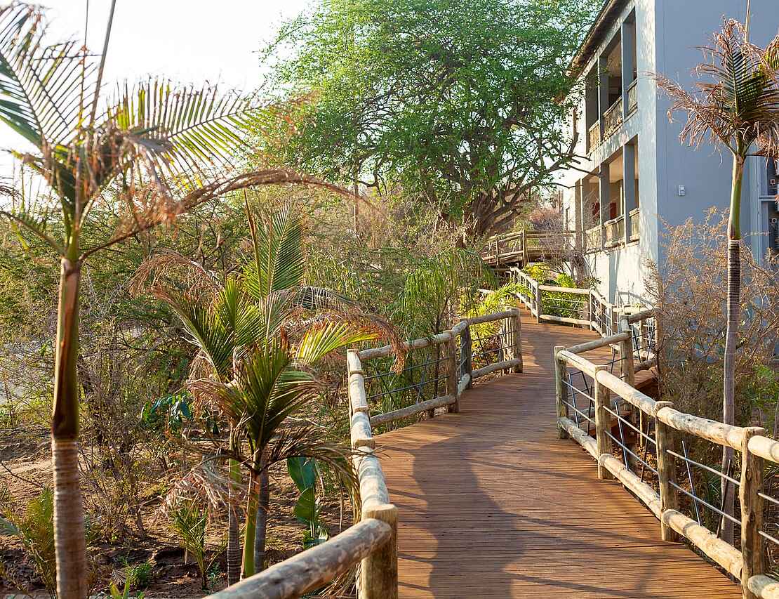 Die Chobe Safari Lodges befinden sich in Kasane, einer kleinen Stadt in Botswana, am Rande des Chobe-Nationalparks und direkt am Chobe-Fluss. Die Anlage besteht aus der Chobe Safari Lodge und der Chobe Bush Lodge, die nur wenige Gehminuten voneinander entfernt liegen. Gäste können die Annehmlichkeiten beider Lodges uneingeschränkt nutzen. Die Umgebung besticht durch eine reizvolle Flora und Fauna, und man trifft gelegentlich Warzenschweine und Antilopen direkt vor der eigenen Tür an. Mit komfortablen Unterkünften und hervorragendem Essen sind die Chobe Safari Lodges der ideale Ausgangspunkt, um den Chobe-Nationalpark zu erkunden oder einen Ausflug zu den Victoriafällen zu unternehmen.