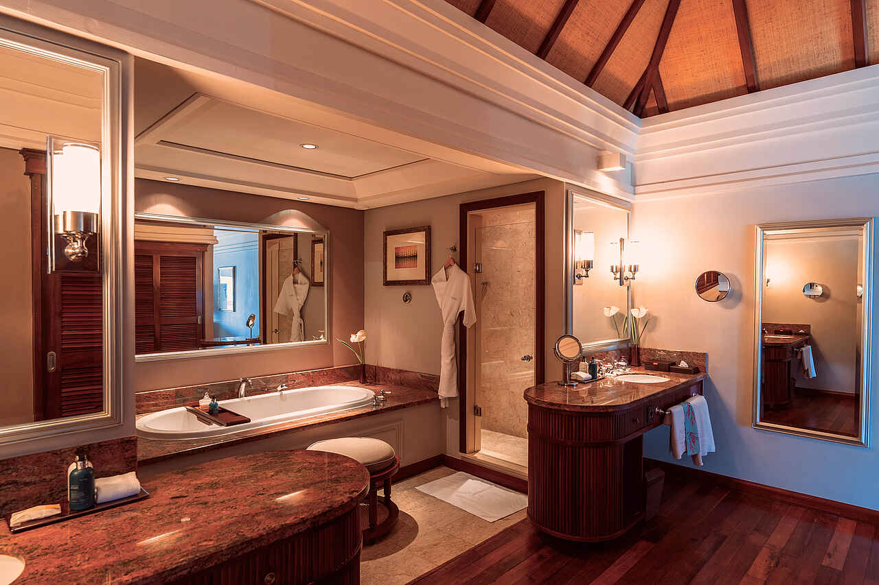 Die 89 Suiten und Villen des Constance Prince Maurice vereinen modernes Design mit mauritischem Stil. Jede Unterkunft bietet einen Blick auf den Ozean, die Gärten oder die Lagune sowie eine private, möblierte Terrasse oder einen Balkon. Die Junior Suiten überzeugen mit stilvoller Einrichtung und einem komfortablen Doppelbett mit Pillow Menu, das Gästen eine Auswahl an Kopfkissen für individuellen Schlafkomfort bietet. Zu den Annehmlichkeiten gehören außerdem eine Minibar, Klimaanlage, Satelliten-TV, kostenfreies WLAN, ein Hi-Fi-System sowie Kaffee- und Teezubereitungsmöglichkeiten. Das elegante Badezimmer verfügt über Doppelwaschbecken, Regendusche, Badewanne und hochwertige Pflegeprodukte.