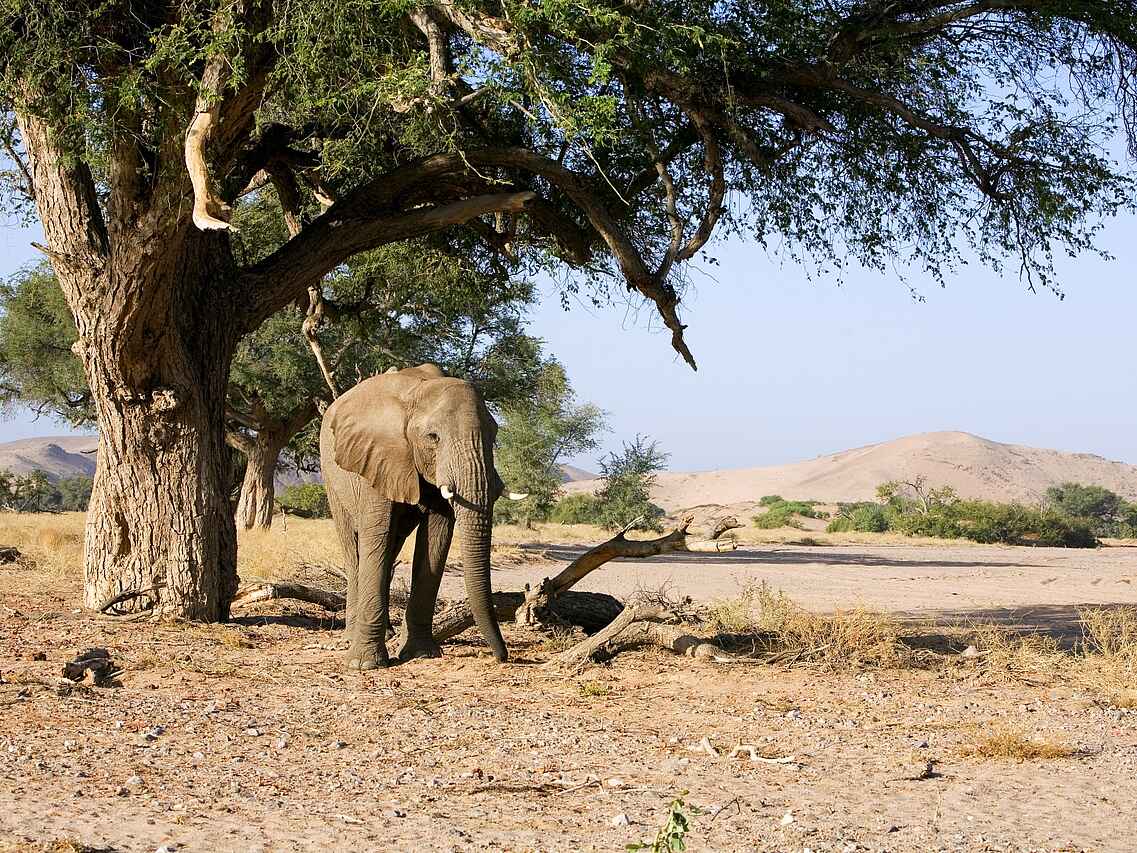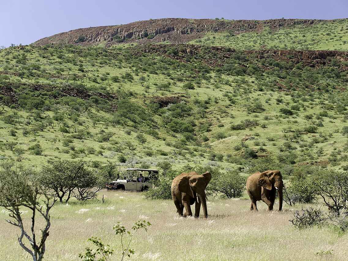 Das Damaraland Camp liegt in Namibia in der Kunene Region, im südlichen Teil des Damaralands, eingebettet in ein privates Schutzgebiet mit weiten Ebenen, Felsformationen und Trockenflusstälern. Die Lage bietet beste Voraussetzungen für Begegnungen mit wüstenangepassten Elefanten in einer der spannendsten Wüstenlandschaften des Landes. Entstanden aus einer Partnerschaft zwischen der Torra Conservancy und Wilderness, verbindet das Camp intensive Safarierlebnisse mit echten Einblicken in die Region und ihre Menschen. Gäste erleben hier nicht nur außergewöhnliche Natur, sondern auch ein Safaricamp, das Verantwortung übernimmt und der lokalen Gemeinschaft dauerhaft zugutekommt.