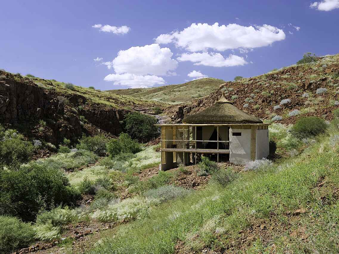 Das Damaraland Camp befindet sich im Damaraland in der Kunene Region im Nordwesten Namibias. Die Umgebung ist geprägt von offenen Ebenen, Felsmassiven und Trockenflüssen. Die Lage innerhalb eines privaten Schutzgebiets ermöglicht exklusive Aktivitäten abseits öffentlicher Routen.