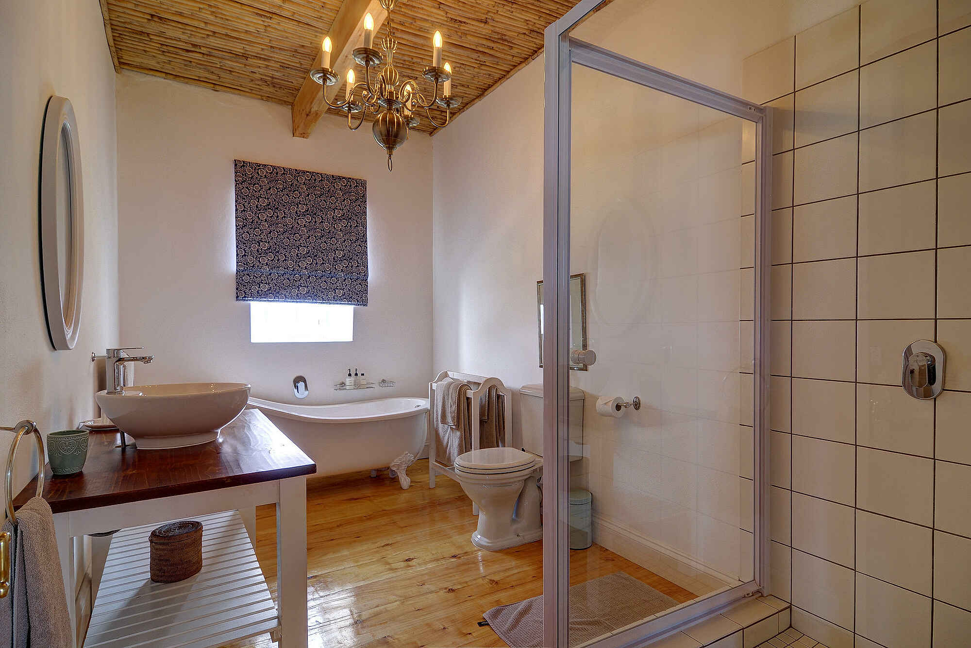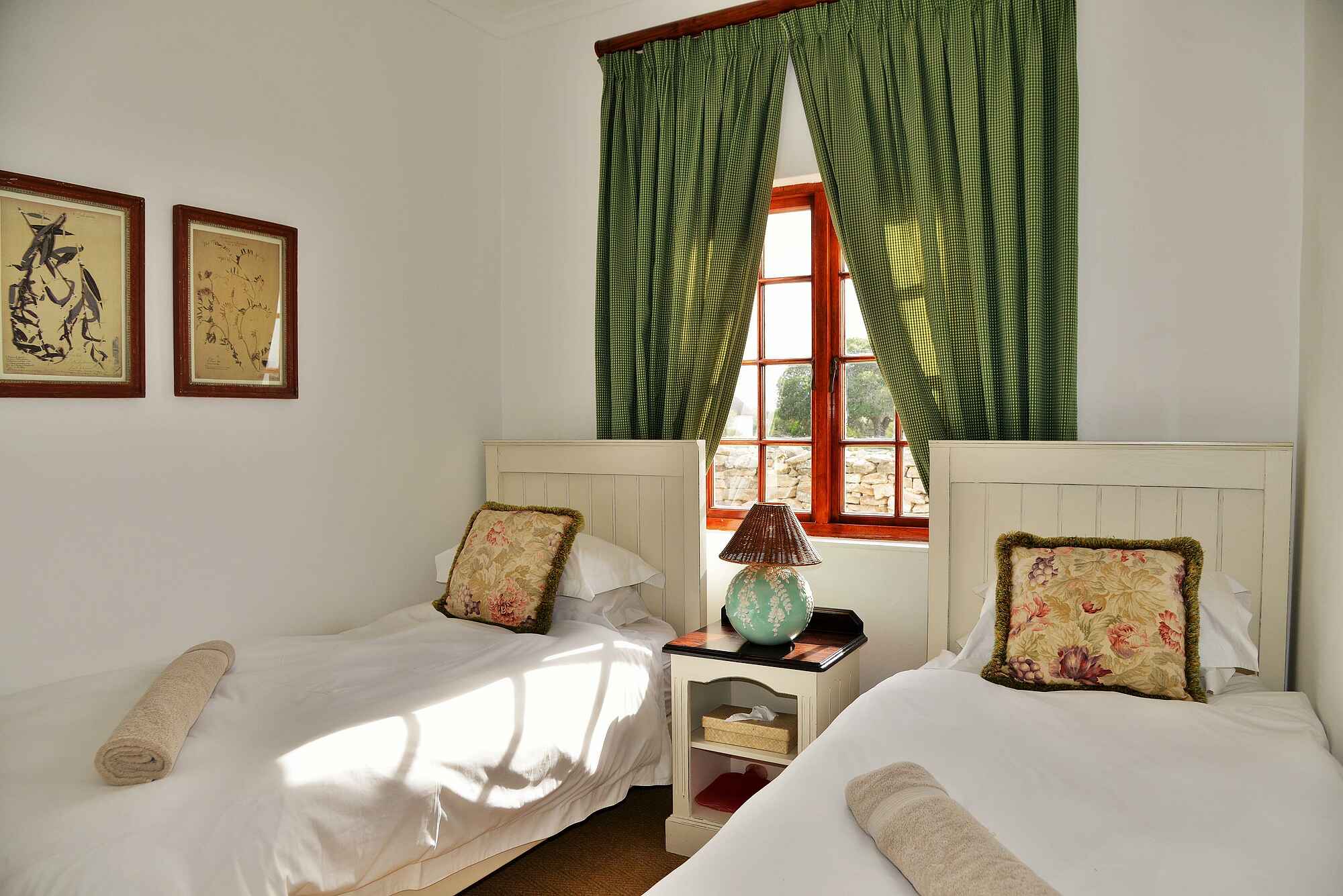 Die De Hoop Collection Lodge verfügt über verschiedene zentrale Bereiche. Herzstück ist das offene Restaurant "The Fig Tree", in dem Gäste alle Mahlzeiten mit Blick ins Grüne genießen. Eine Lounge mit Kamin sorgt für gemütliche Abende, während die Außenterrasse zum Frühstück unter freiem Himmel einlädt. Im Opstal-Bereich gibt es zudem einen Swimmingpool, der an heißen Tagen für Erfrischung sorgt. Ein kleiner Shop bietet Souvenirs, regionale Produkte und Nützliches für den Aufenthalt. Wer aktiv werden möchte, findet auf dem Gelände auch einen Boule-Platz und ein kleines Outdoor-Fitnessangebot. Die Atmosphäre ist entspannt und persönlich.