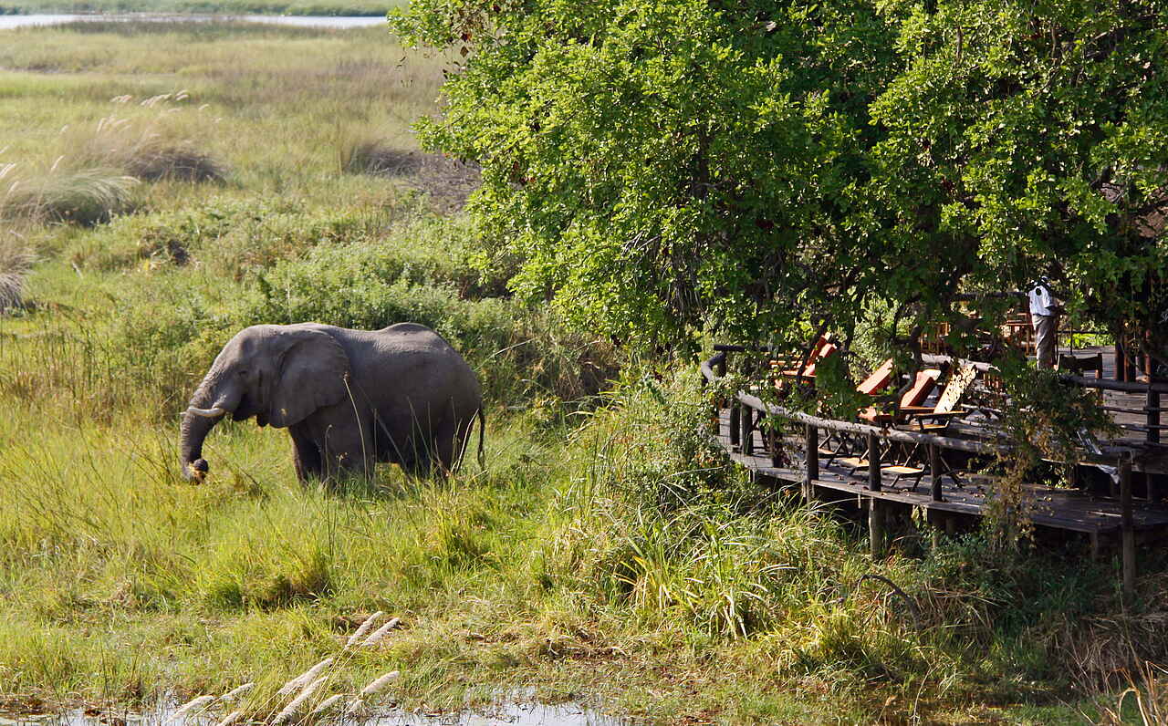 Delta Camp ist ein sehr naturnahes Camp südlich vom Moremi Game Reserve. Auf motorisierte Aktivitäten wird verzichtet, die Natur wird überall in die Camp-Gestaltung einbezogen. Öko-Tourismus macht sich hier einen Namen abseits der Massen.