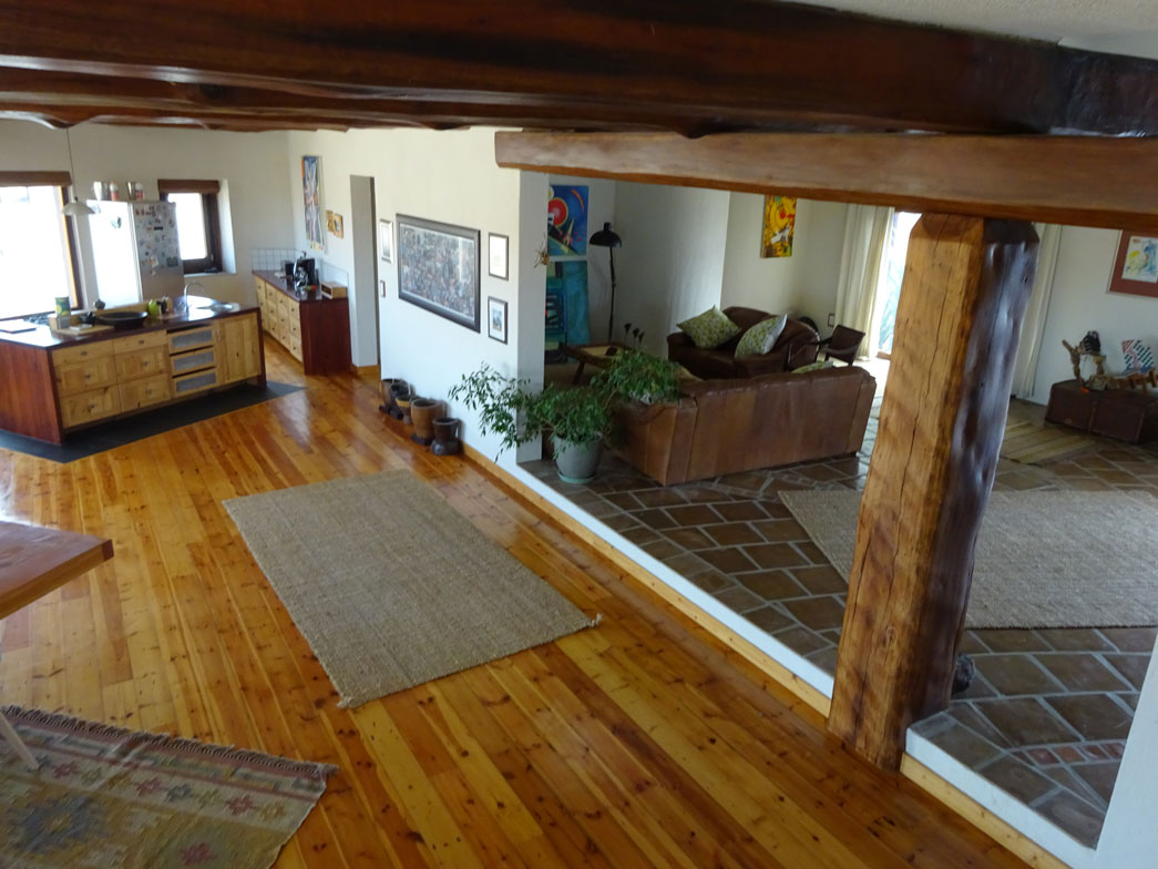 Einstöckiges, rot gestrichenes Hauptgebäude mit Restaurant und Deck auf offfenen, abgerundetetnFelsen gebaut. Im dunkel gefliesten Restaurant wird nur Frühstück serviert. Rustikale Tische und Stühle. Vom Hauptgebäude führen markierte, betonierte Wege zu den Bungalows und VIllen. Die Villen stehen ein den beiden entgegengesetzten Enden des Geländes. Die Architektur arbeitet mit vielen Winkeln und Verschachtelungen. Auf dem Gelände stehen monolithische, atavistische Steinskulpturen, die an die Moai der Osterinseln erinnern und eine eigenartige Atmosphäre schaffen. Blumenbeete mit Wüstenpflanzen.