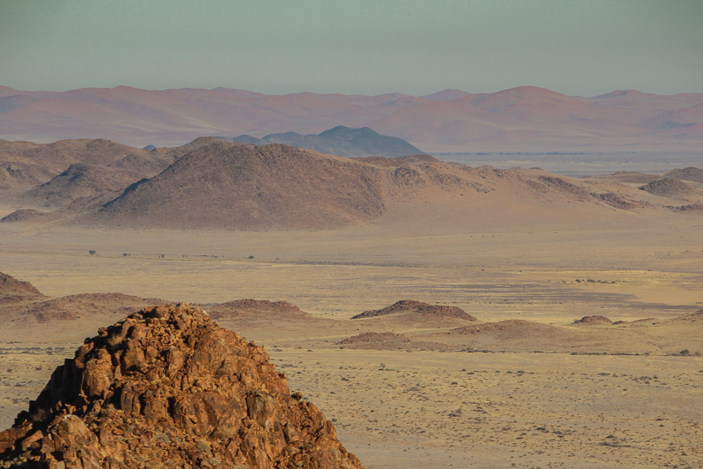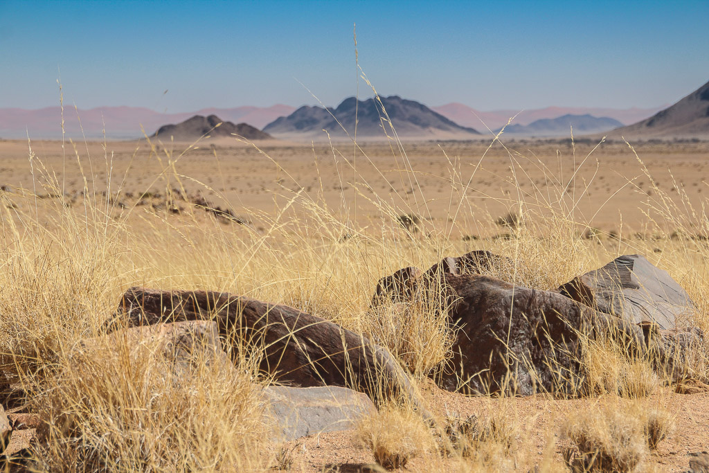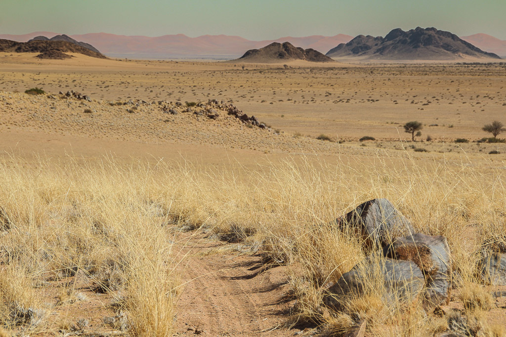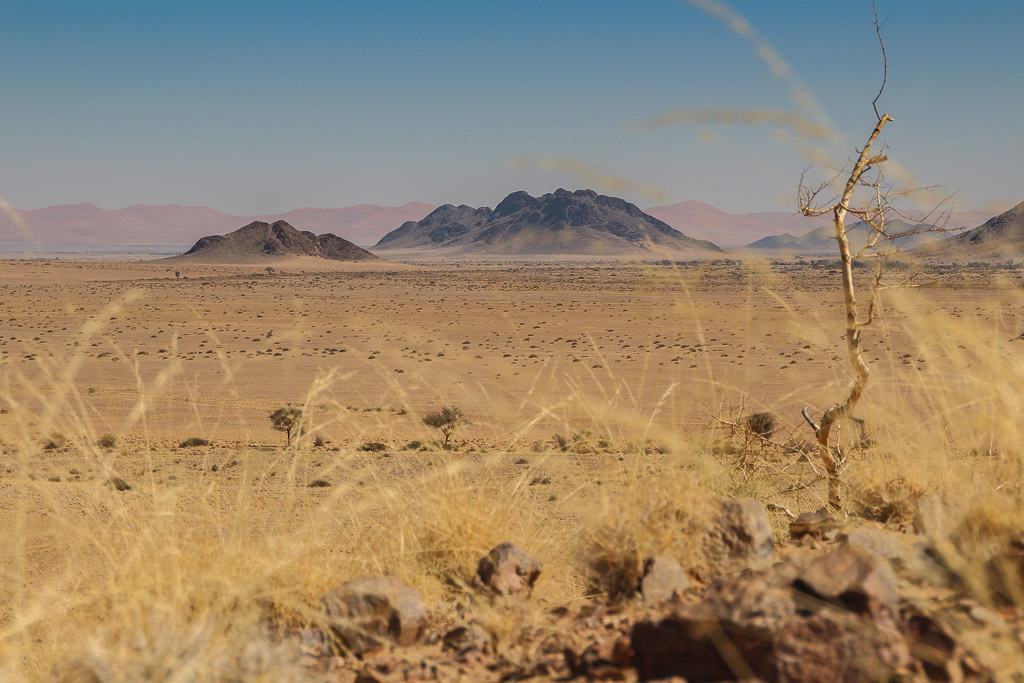 Die Desert Homestead Lodge liegt rund 30 Kilometer südöstlich von Sesriem, dem Tor zu Sossusvlei, im Namib-Tsaris-Privatreservat. Die Umgebung ist geprägt von sanften Tälern, offenen Ebenen und den markanten Gipfeln der Naukluftberge.