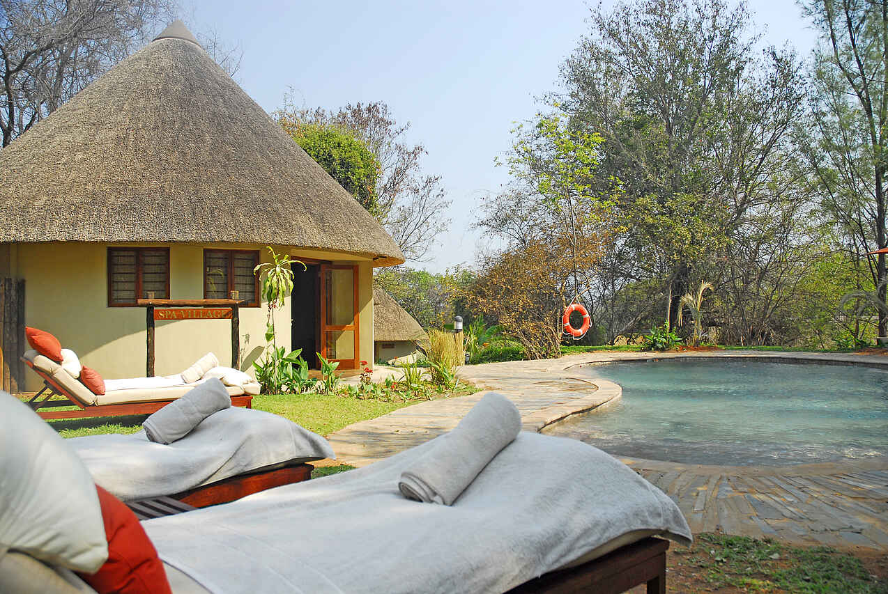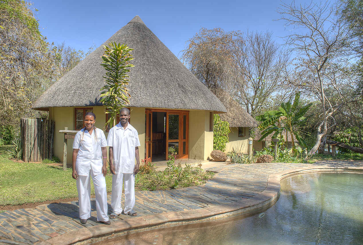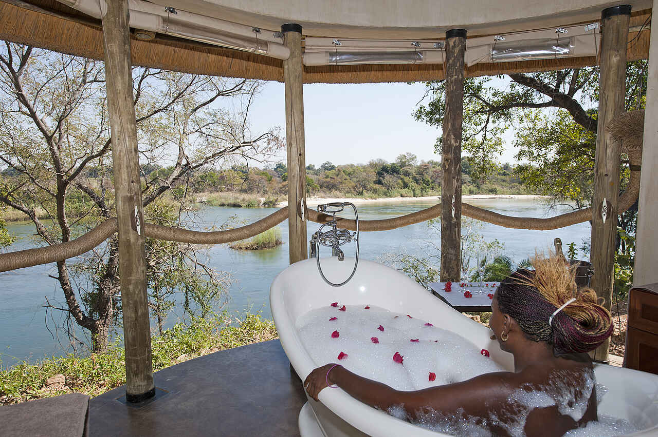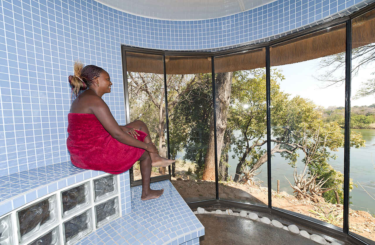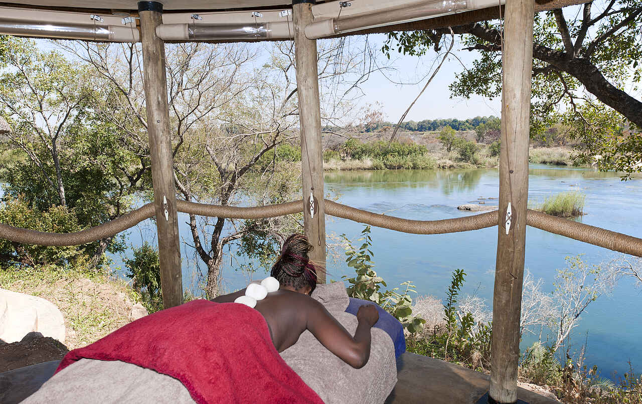 Eigenes Spa, direkt am Fluss, zwischen Buffalo Game Park und Mahango Nationalpark.