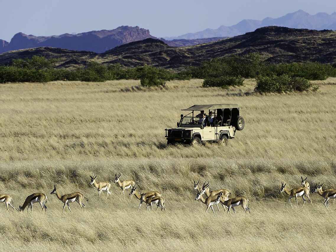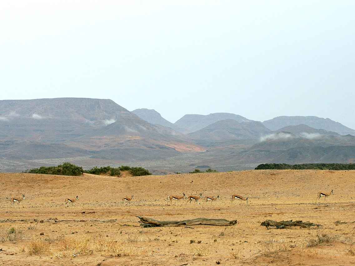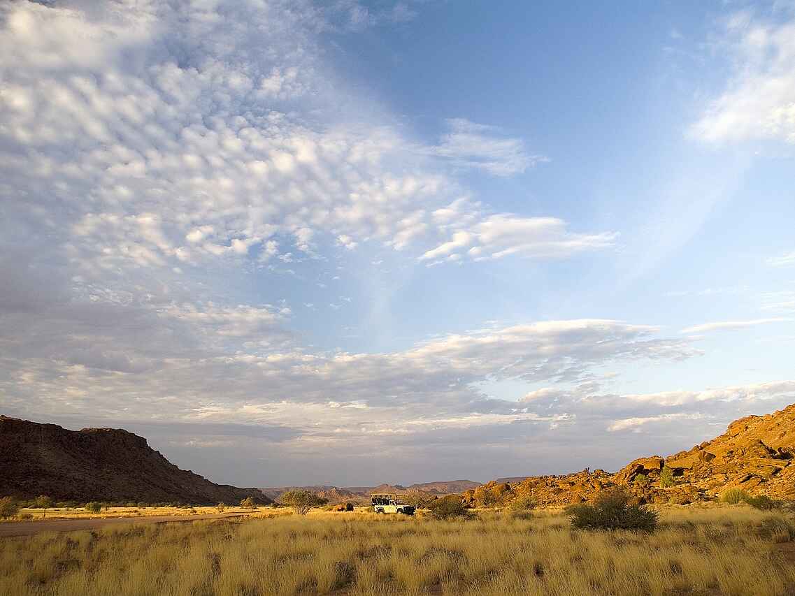 Das Damaraland ist durch ein trockenes Wüstenklima geprägt. Die beste Reisezeit liegt zwischen Mai und Oktober, wenn die Temperaturen moderat sind und Tierbeobachtungen entlang der Flussläufe besonders gut möglich sind. In den Sommermonaten von November bis März steigen die Temperaturen deutlich an. Kurze Regenfälle können in dieser Zeit auftreten, sind jedoch unregelmäßig. Die Landschaft verändert sich saisonal, was unterschiedliche Eindrücke ermöglicht. Auch die Übergangsmonate April und November eignen sich für einen Aufenthalt, insbesondere für Reisende, die Hitze gut vertragen und weniger Besucher bevorzugen.