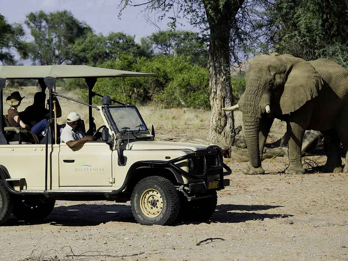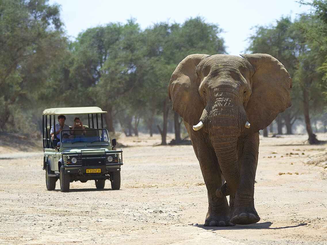 Der Schwerpunkt der Aktivitäten im Doro Nawas Camp liegt auf Erkundungen der Damaraland Region. Pirschfahrten finden in offenen Geländewagen statt und führen entlang trockener Flussläufe und durch offene Ebenen. Besonderes Augenmerk gilt den wüstenangepassten Elefanten, die sich entlang des Aba Huab Flusses bewegen. Neben Fahrten gehören geführte Wanderungen zum Programm, bei denen Guides Einblicke in Geologie, Flora und die Anpassungsfähigkeit der Tierwelt vermitteln. Kulturelle Ausflüge zu Felsgravuren und historischen Stätten ergänzen das Angebot und bieten einen Einblick in die Geschichte der Region