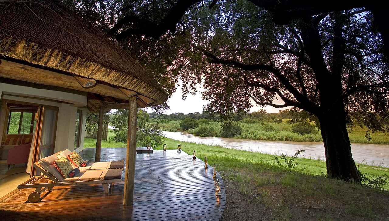 Die Dulini River Lodge ist eine von drei anspruchsvollen Dulini-Lodges. Sie liegt direkt am Sand River und bietet vom Viewing Deck einen entsprechenden Blick. Die Einrichtung ist luxuriös-elegant. Die Nähe des Flusses ermöglicht besondere Aktivitäten wie Dinner auf Sandbänken.
