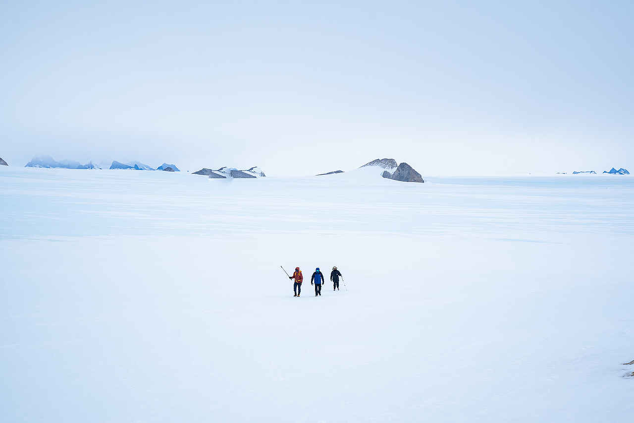Das Echo Camp liegt in der unberührten Wildnis der Antarktis im Queen-Maud-Land, weitab jeglicher menschlicher Zivilisation. Die umgebende Landschaft ist geprägt von majestätischen Bergen, schimmernden Gletschern und weiten Eisflächen, die eine unvergleichliche Kulisse bilden und das Gefühl von Abgeschiedenheit und Ruhe vermitteln.