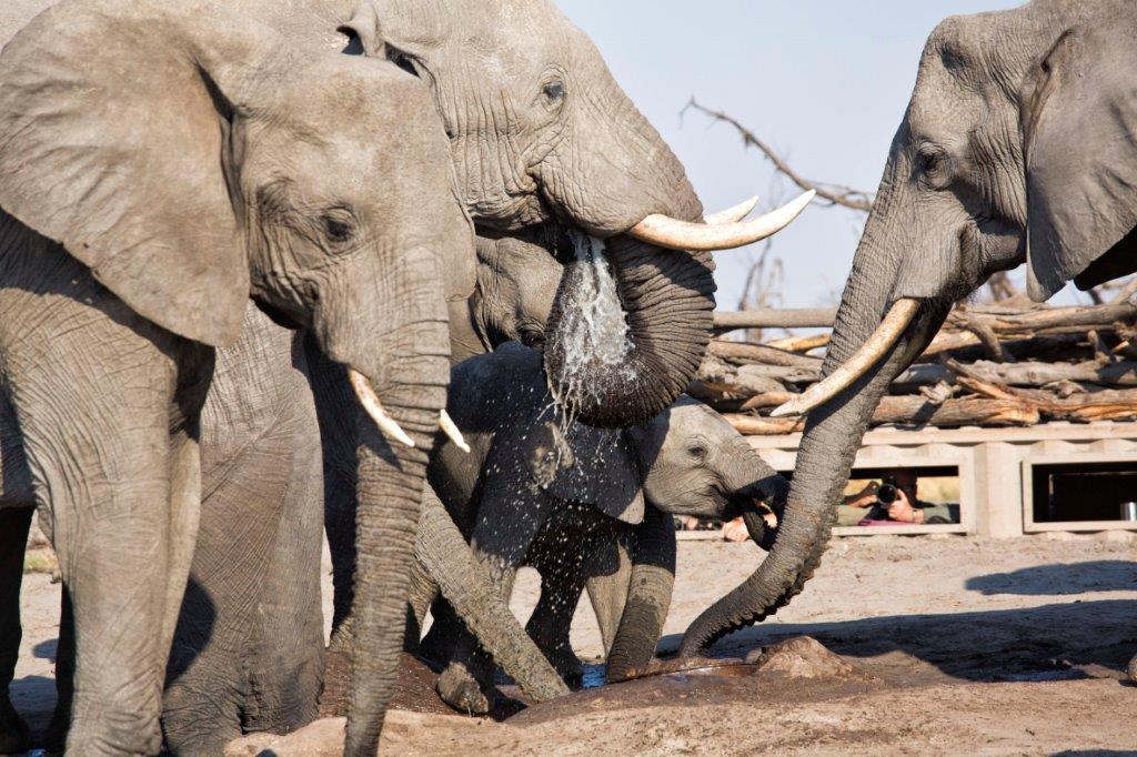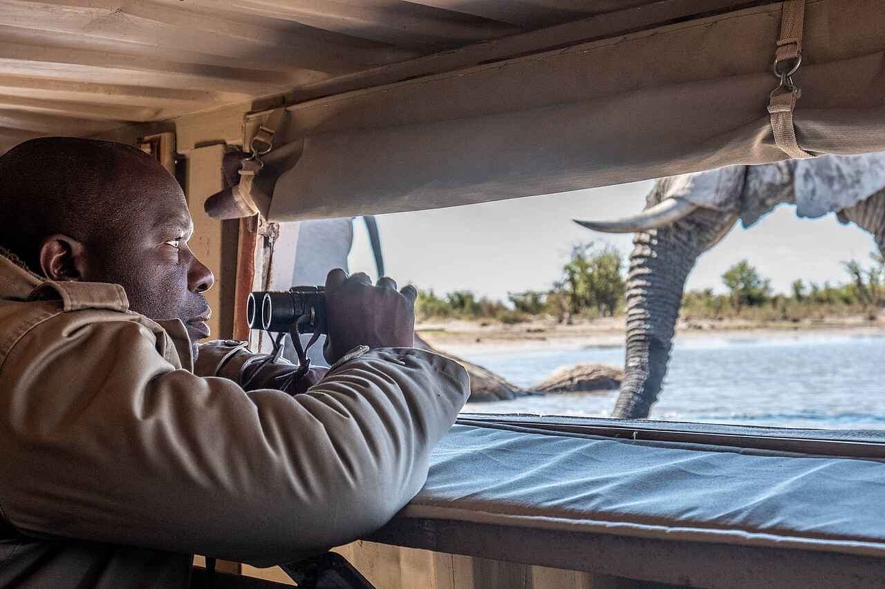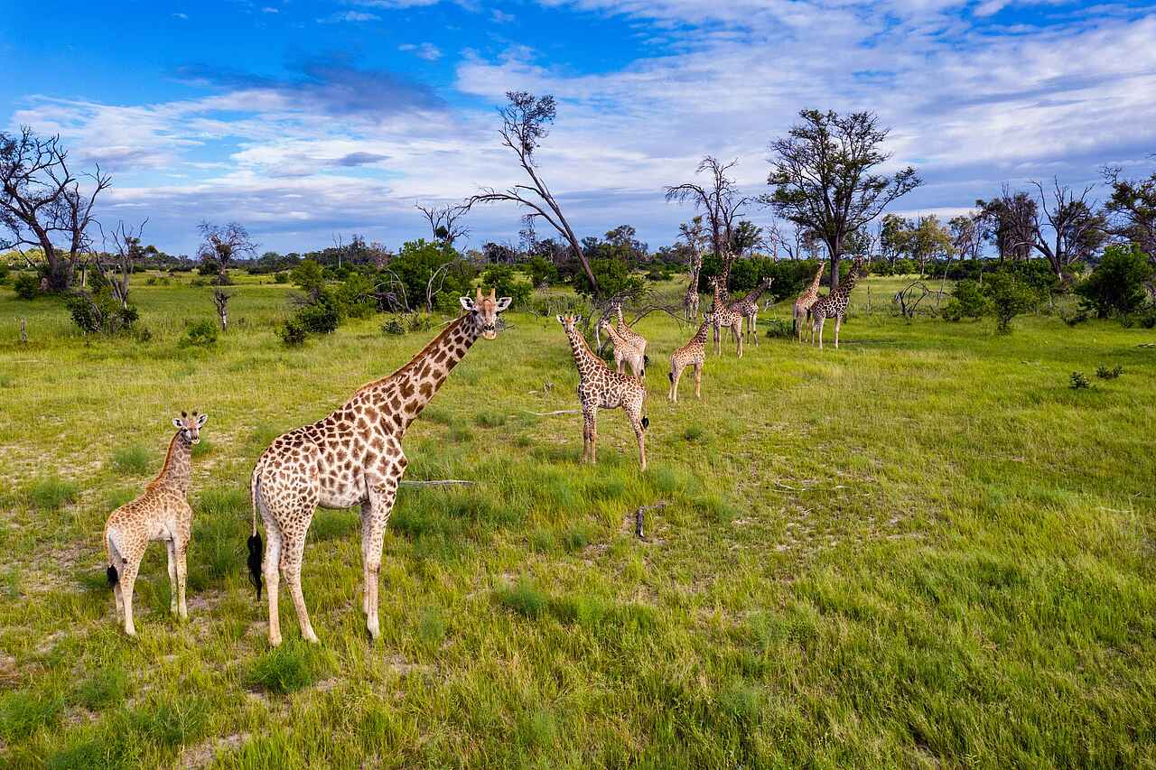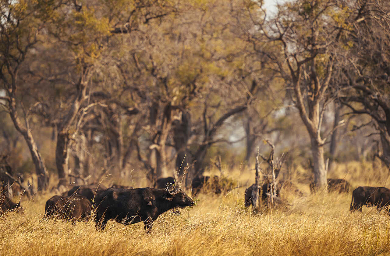 In der vielfältigen Khwai- und Moremi-Region sind vor allem während der Trockensaison von Juni bis Oktober zahlreiche Elefanten und Büffel zu beobachten, die sich gern am campeigenen Wasserloch aufhalten. Die Feuchtgebiete und Flüsse beherbergen beeindruckende Mengen an Letschwe-Antilopen, Flusspferden und Krokodilen. Auf dem trockenen Land verstecken sich die Großkatzen, wie Löwen und Leoparden, entlang der Baumgrenzen.