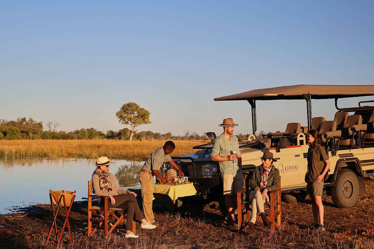 Pirschfahrten finden morgens und nachmittags statt und führen durch die 200.000 Hektar große Wildnis des Khwai Private Reserve. Geführte Wildwanderungen bieten spannende Einblicke in die Pflanzen- und Insektenwelt. Eine erhöhte Plattform unweit des Camps ermöglicht einen weiten Blick über das Wasserloch und die umliegenden Wälder. Direkt im Camp bietet ein Unterstand auf Bodenniveau hautnahe Tierbeobachtungen - dank Beleuchtung auch nachts. Die KPR Ranger Experience erlaubt Gästen, Raubtiere zu tracken, Daten zu erfassen und Schutzprojekte zu besuchen (gegen Aufpreis). Ein Besuch im Khwai Village vermittelt Einblicke in die lokale Kultur, Korbflechterkunst und traditionelle Heilmethoden.