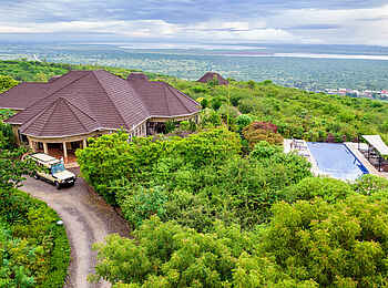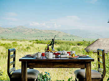 Die Elephant Plains Lodge liegt in Uganda im Kasenyi-Sektor des Queen-Elizabeth-Nationalparks. Sie thront auf einem Hügel oberhalb des Kazinga-Kanals mit Blick auf die weite Savanne und die Rwenzori-Berge. Die Umgebung ist geprägt von offenen Ebenen, Salzpfannen und dichter Tierpopulation.
