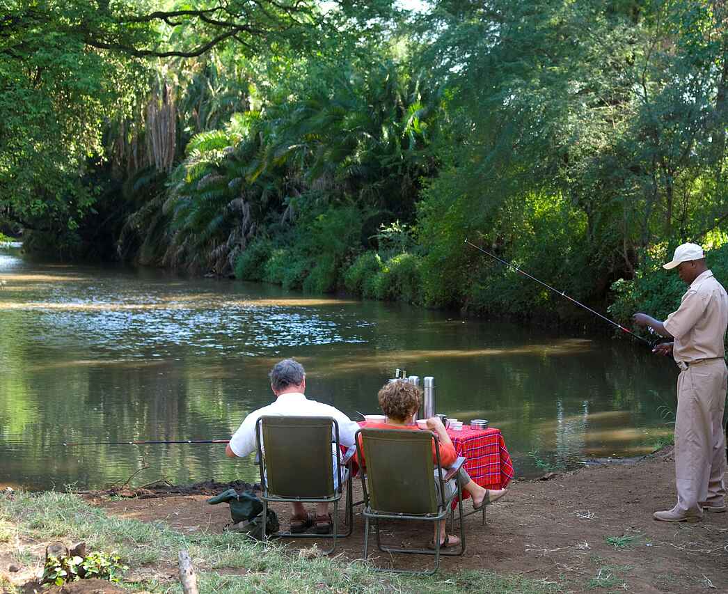 Alle Guides Bronze oder Silver Level Guides der Kenya Professional Safari Guides Association: Pirschfahrten im offenen 4x4 Toyota Landcruiser, Abend-/Nachtfahrten in der Dämmerung, Rhino Sanctuary, Tagesausflüge zum Tana, Bush Breakfast, Sundowner, Angeln, Picknick, geführte Wanderungen, Besteigung des Mughwango Hill mit 360°-Aussicht, Swimming Pool, Spa-Behandlungen, Tharaka-Gemeinde, Flitterwochenangebote, Hochzeiten.