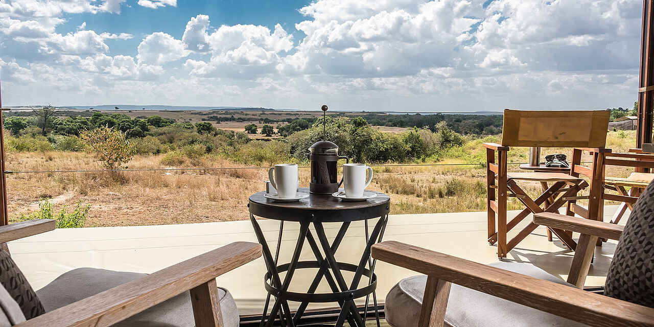 Direkt mit Blick auf die ‚größte Show der Welt‘, der Überquerung des Mara Rivers von über 1 Million Gnus, Zebras und Antilopen. Entim Mara Camp liegt erhöht über dem Mara Fluss, ganz in der Nähe des Zusammenflusses von Mara und Talek River inmitten des Masai Mara Nationalparks. Die Zelte des Main Camps überblicken den Fluss, die des Private Camps die Weiten der Masai Mara mit ihren sanften Hügellandschaften.