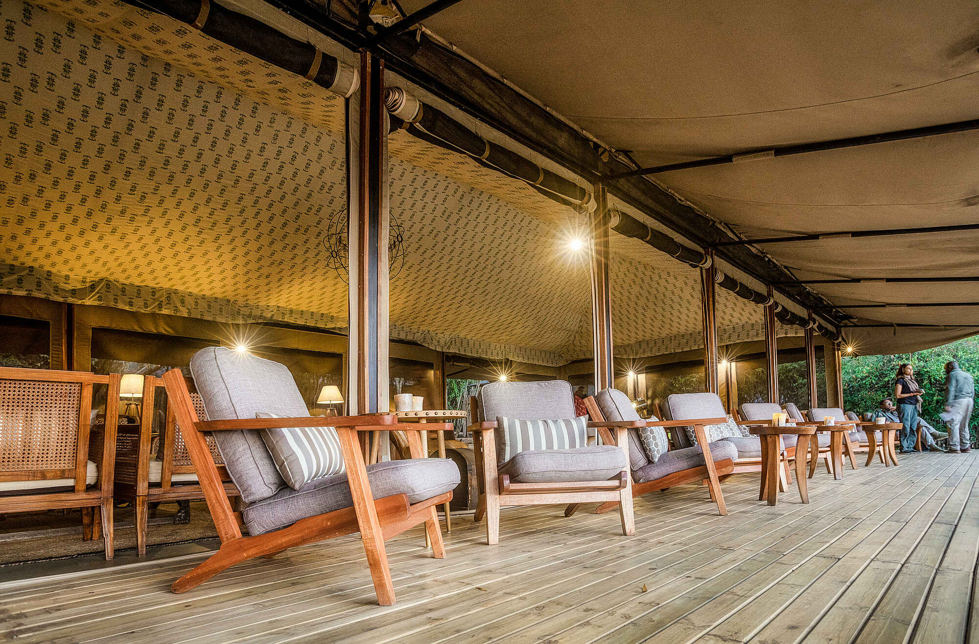 Die Gemeinschaftsbereiche des Entim Private Wing Camp verbinden entspannten Komfort mit einer stilvollen, naturnahen Atmosphäre. Auf der weitläufigen Holzterrasse schweift der Blick über die Savanne und Lounge sowie Bar bieten mit gemütlichen Sitzgruppen einen angenehmen Ort zum Verweilen. Die warmen Farben und hochwertigen Materialien der Einrichtung schaffen ein behagliches Ambiente. Ein Swimmingpool mit bequemen Liegestühlen bietet angenehme Abkühlung zwischen den Aktivitäten und sorgt für erholsame Momente in der Mittagssonne. Am Abend sammeln sich die Gäste an der Feuerstelle, genießen den Himmel voller Sterne und lassen den Safaritag entspannt ausklingen.