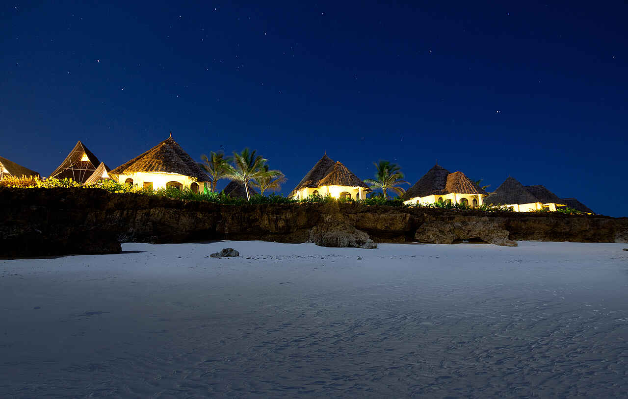 Am Nordzipfel der südlicheren Hauptinsel Sansibars (Unguja), direkte Strandlage zum Indischen Ozean. Entfernung zum Festland ca. 50 Kilometer.