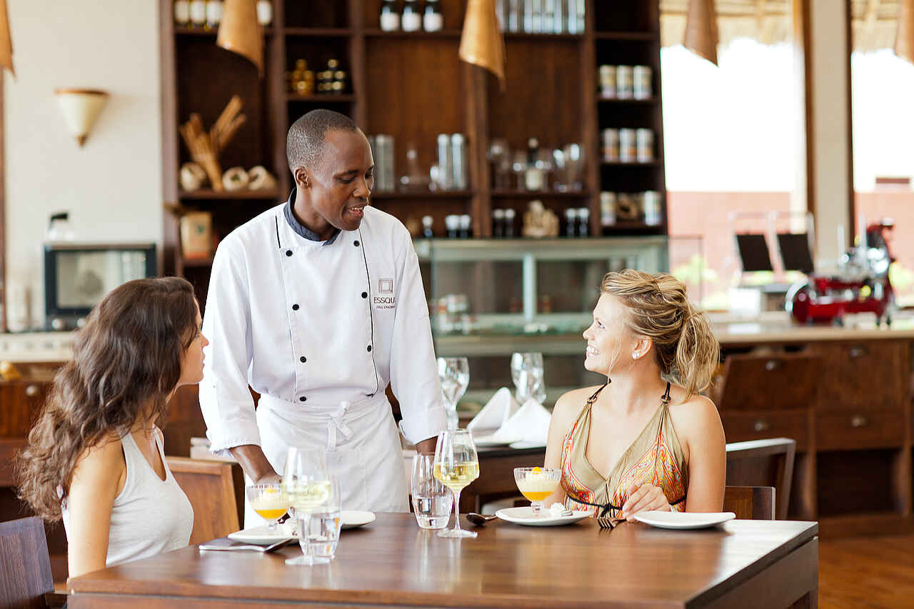 Buchbare Verpflegungsoptionen: Halb- sowie Vollpension und All Inclusive. Mahlzeiten im Market Kitchen Restaurant inklusive. Weitere Restaurants: À la carte Restaurant sowie al fresco Jetty. Bars: Bar 1506 mit großer Tapasauswahl sowie Baobab Bar. Bei All Inclusive Verpflegung alle Mahlzeiten und Getränke (außer Champagner) in allen Bars und Restaurants (außer im À la carte Restaurant) im Preis inbegriffen.