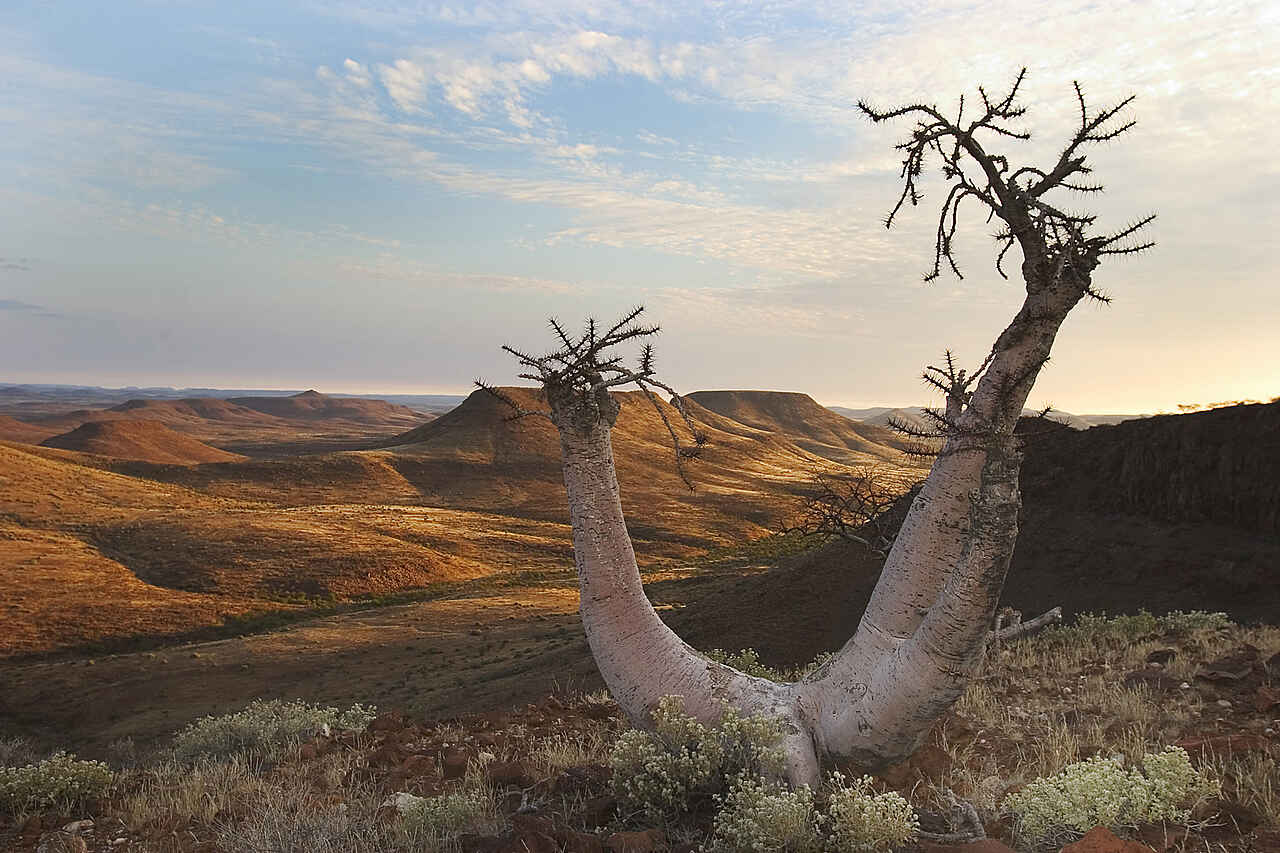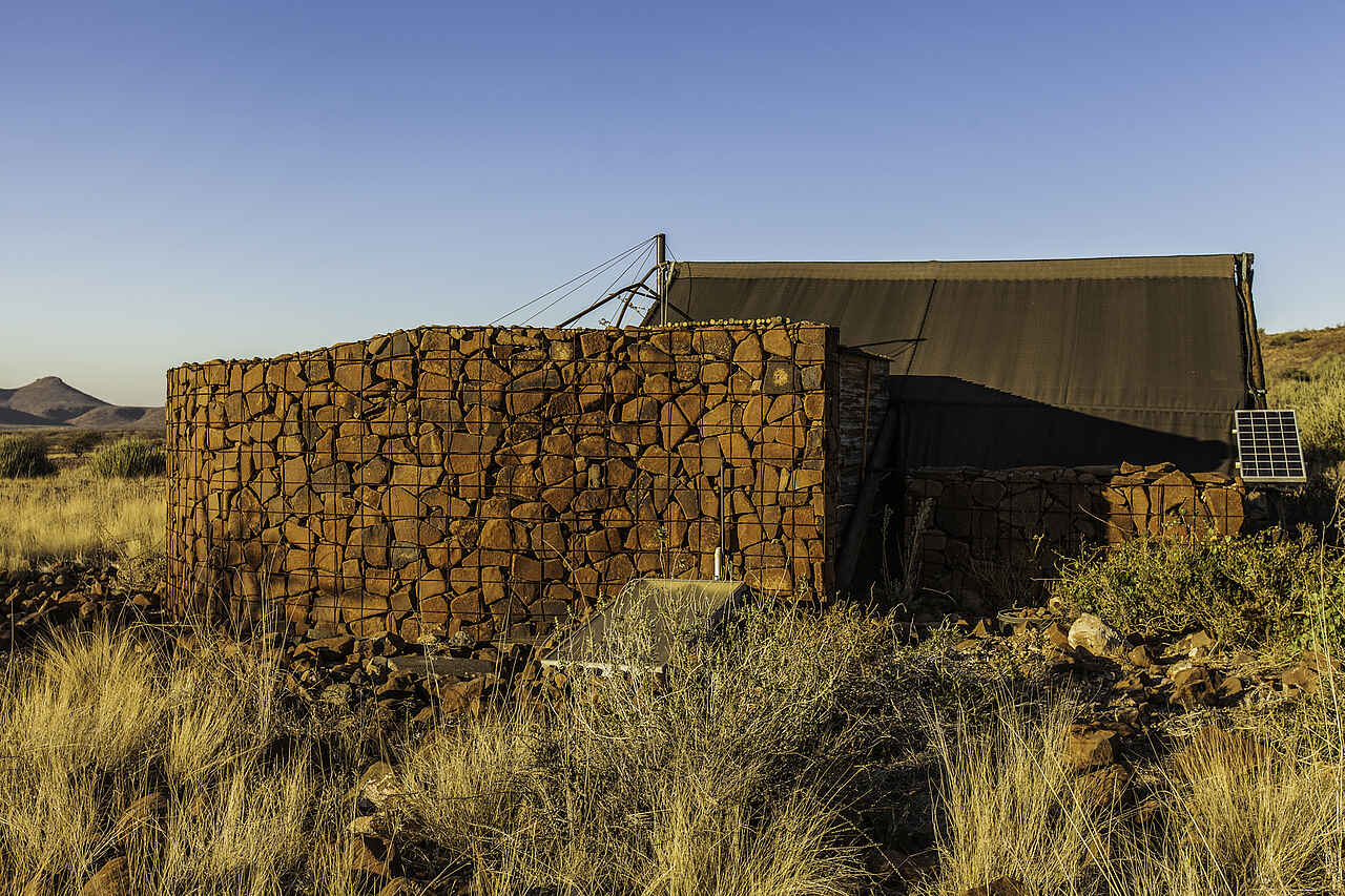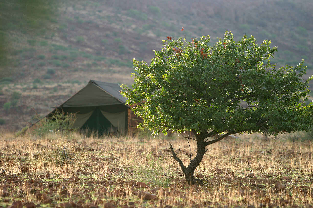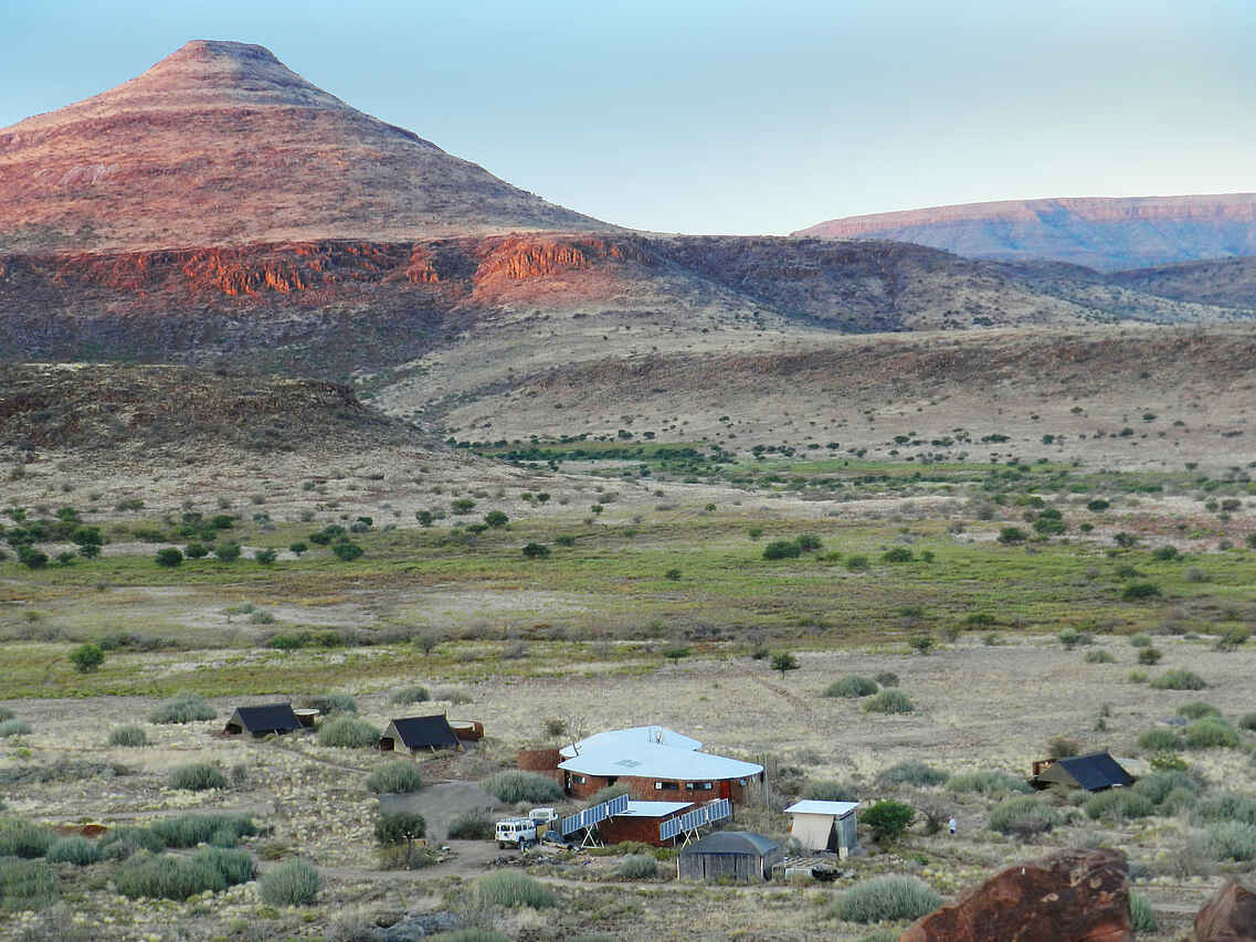 Etendeka Mountain Camp ist das einzige permanente Zeltcamp im gesamten Damaraland. Die offenen Zelte bieten einen guten Blick auf die Landschaft. Nur Gäste des Camps dürfen das dazugehörige, private Konzessionsgebiet besuchen, was die Erlebnisqualität sehr verbessert und für ungestörte Naturbeobachtungen sorgt.