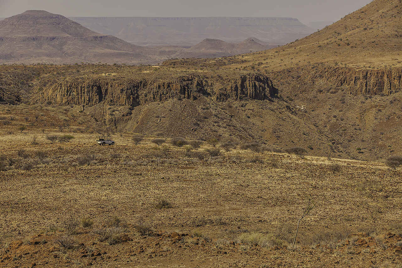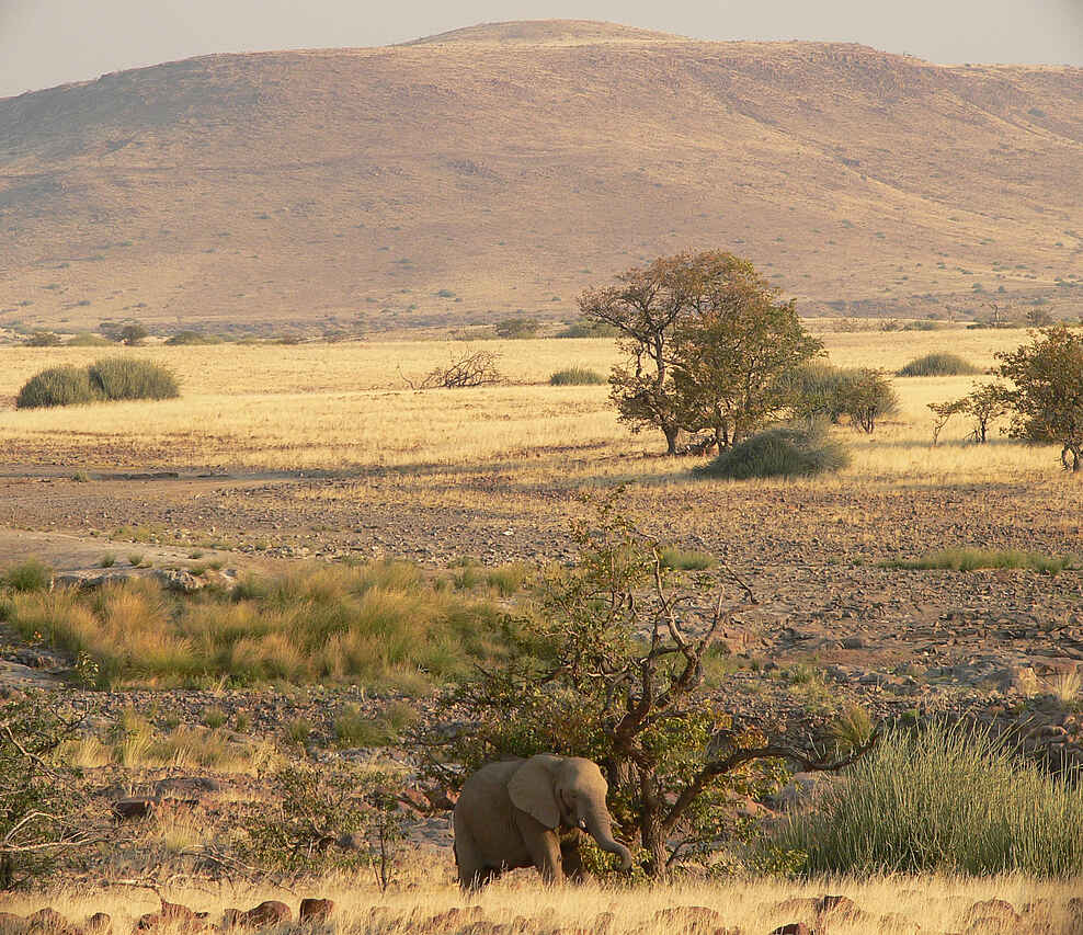 Die Landschaft vor Ort scheint sehr gnadenlos, dennoch ist sie ein Rückzugsort für Pflanzen und Säugetiere. Wüstenelefanten und Spitzmaulnashörner teilen sich die Gegend mit Geparden, Löwen, Zebras und Säbelantilopen. Auch Hyänen, Leoparden und Giraffen werden gesichtet. Tiersichtungen sind aber immer nur ein Bonus, und haben viel mit Glück zu tun.