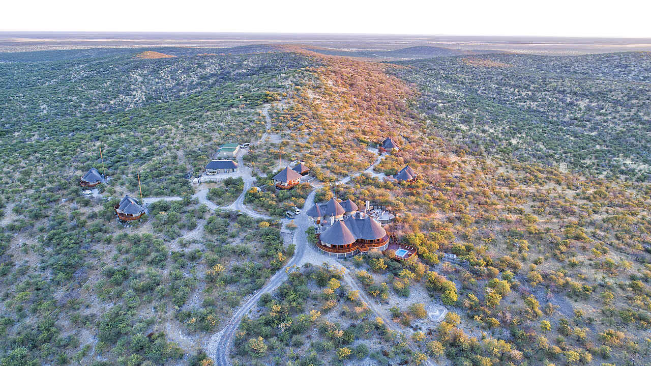 Die Lodge liegt in der Etosha Heights Private Reserve, einem privaten Wildreservat an der südwestlichen Grenze des Etosha-Nationalparks in Namibia. Die Umgebung besticht durch weite Ebenen, Akazienwälder und felsige Hügel.