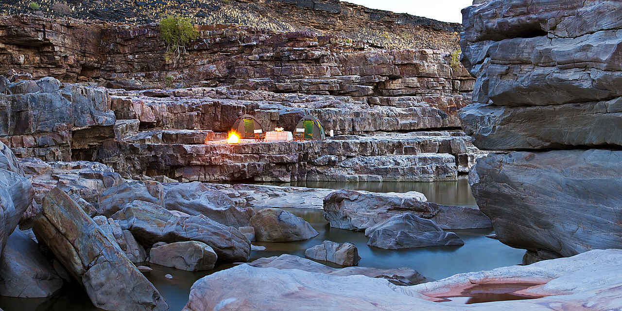 Der Fish River Canyon als zweitgrößter Canyon der Welt bietet mit seiner einmaligen Landschaft und Weiträumigkeit inmitten des Canyon National Parks eine unzählige Vielfalt an Aktivitäten. Wanderungen entlang der verschiedenen Gesteinsformationen bis hinein in die Schlucht und zum landschaftsprägenden Fish River, Camping in freier Wildbahn, kühlende Erfrischungen in den natürlich-geschaffenen Wasserlöchern, das Farbenspiel der Sonnenaufgänge und –untergänge, geologische Expeditionsgänge, Jeepfahrten durch den Canyon oder aber die pure Entspannung und Meditation zu Füßen der Schluchtenlandschaft, die Vielfalt lässt nur sehr wenige Wünsche offen.