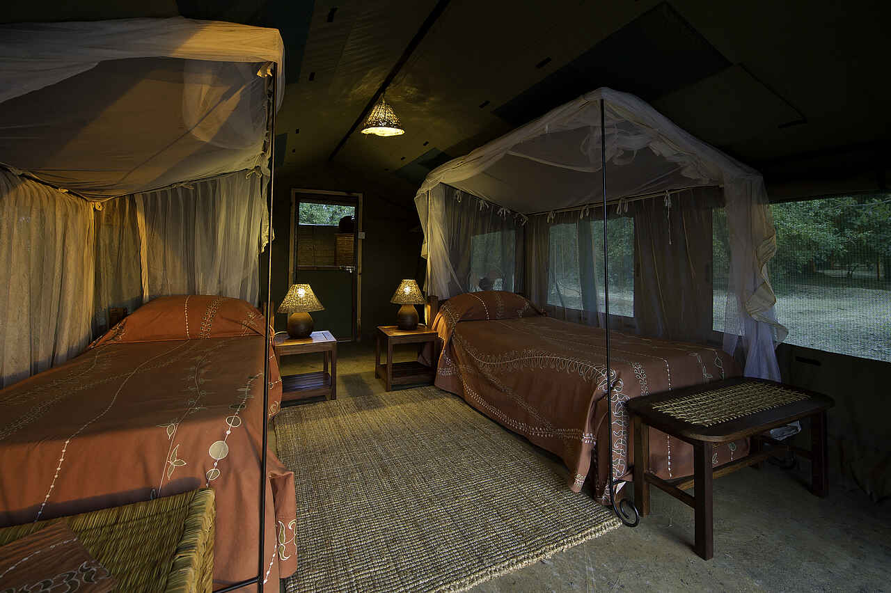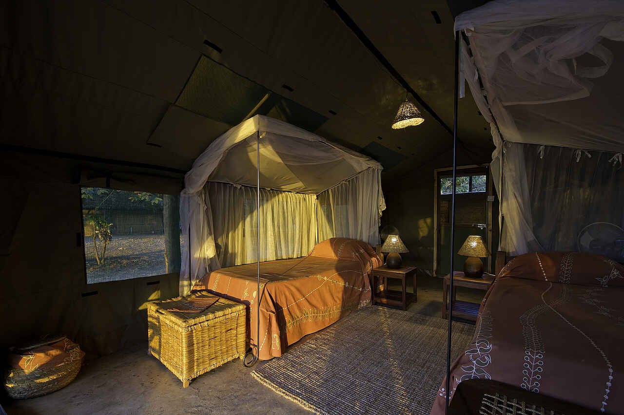 12 Safarizelte in Standard- und Luxusausführung, 6 komfortable Chalets, 1 Familienhaus 1 Baumhaus. Alle Unterkünfte verfügen über ein Bad mit Warmwasser, Dusche WC und Waschbecken, Moskitoschutz und Elektrizität. Standard-Safarizelte mit Doppel-Bett, en-Suite-Badezimmer und Kleiderschrank, die Luxusvariante hat zusätzlich Moskitonetze um die Betten und ein Open-Air-Badezimmer. Chalets: 2 Etagen mit Doppelbetten, Kitchenette und Ventilatoren. Häuser: das 3-stöckige "Jackalberry Treehouse" mit Blick auf die Lagune, Doppel- und Einzelbetten, Sitzecke, Kühlschrank und Bar, sowie das geräumige Familienhaus.