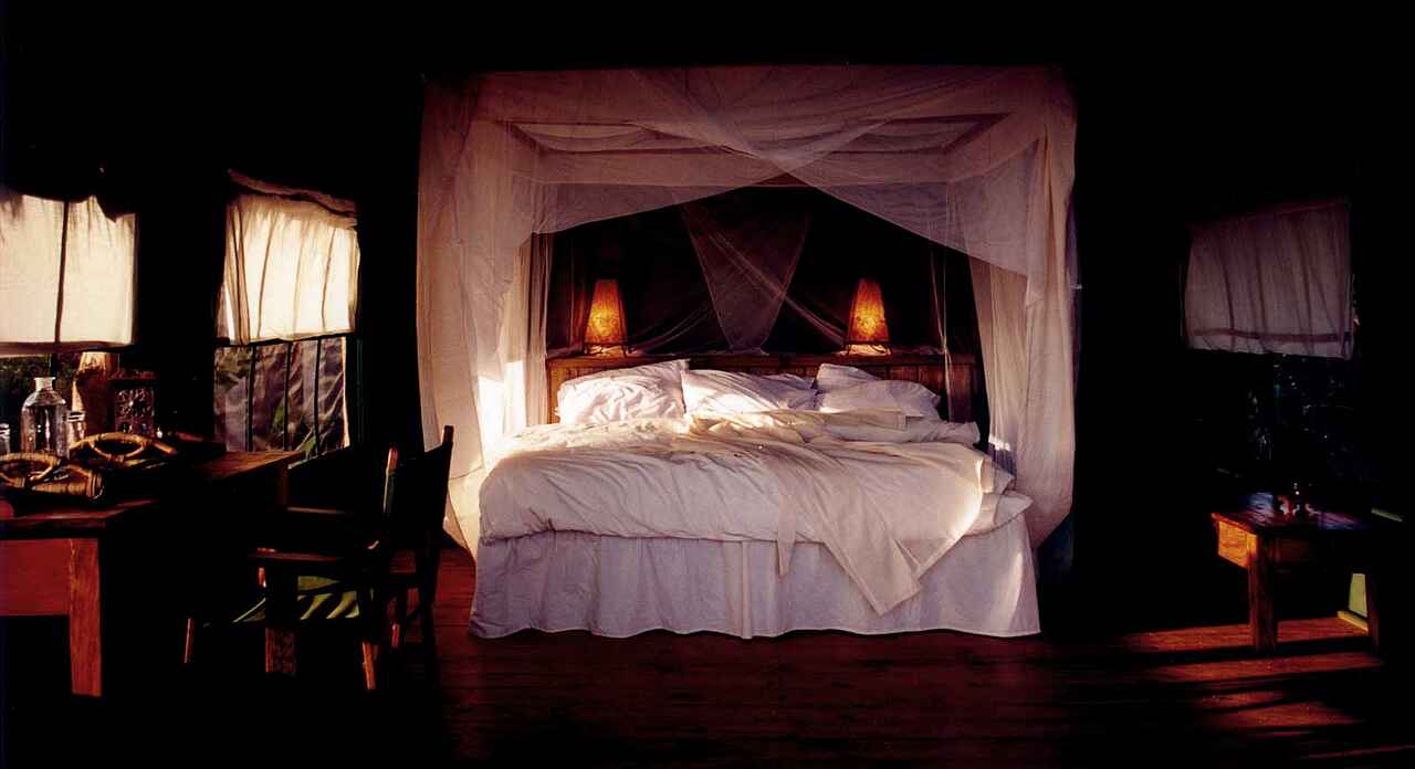 Alle Gästeunterkünfte sind Zelte, die von Reetdächern überdeckt werden. Doppelbett oder zwei Einzelbetten; Couch und kleiner Tisch; private Terrasse mit Liegestühlen und Ausblick auf den Indik; Badezimmer en suite ausgestattet mit WC, Waschbecken und Dusche; Superior-Zelte besitzen außerdem eine weitere überdachte Lounge.