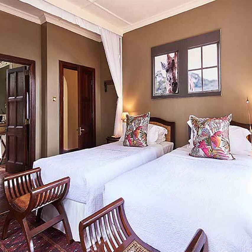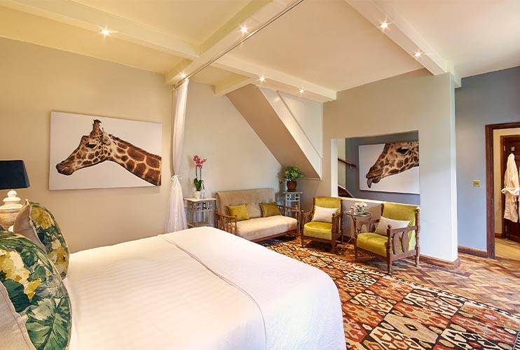 Das besondere am Giraffe Manor ist, dass Gäste Rotschild-Giraffenauf dem Gelände begegnen können und diese gelegentlich sogar ihre Köpfe durch die Fenster der Unterkunft stecken. Gäste beschreiben das Erlebnis häufig wie in dem Film "Out of Africa" - "Jenseits von Afrika". Eines der Zimmer wurde folglich nach der dänischen Autorin Karen Blixen benannt. Die Atmosphäre dieser Lodge ist persönlich-familiär. Frühzeitige Buchung wird empfohlen !