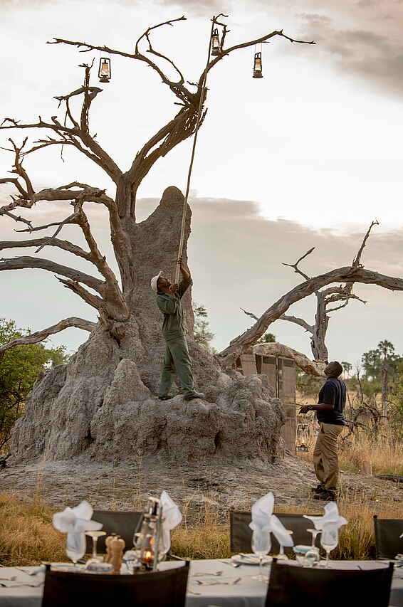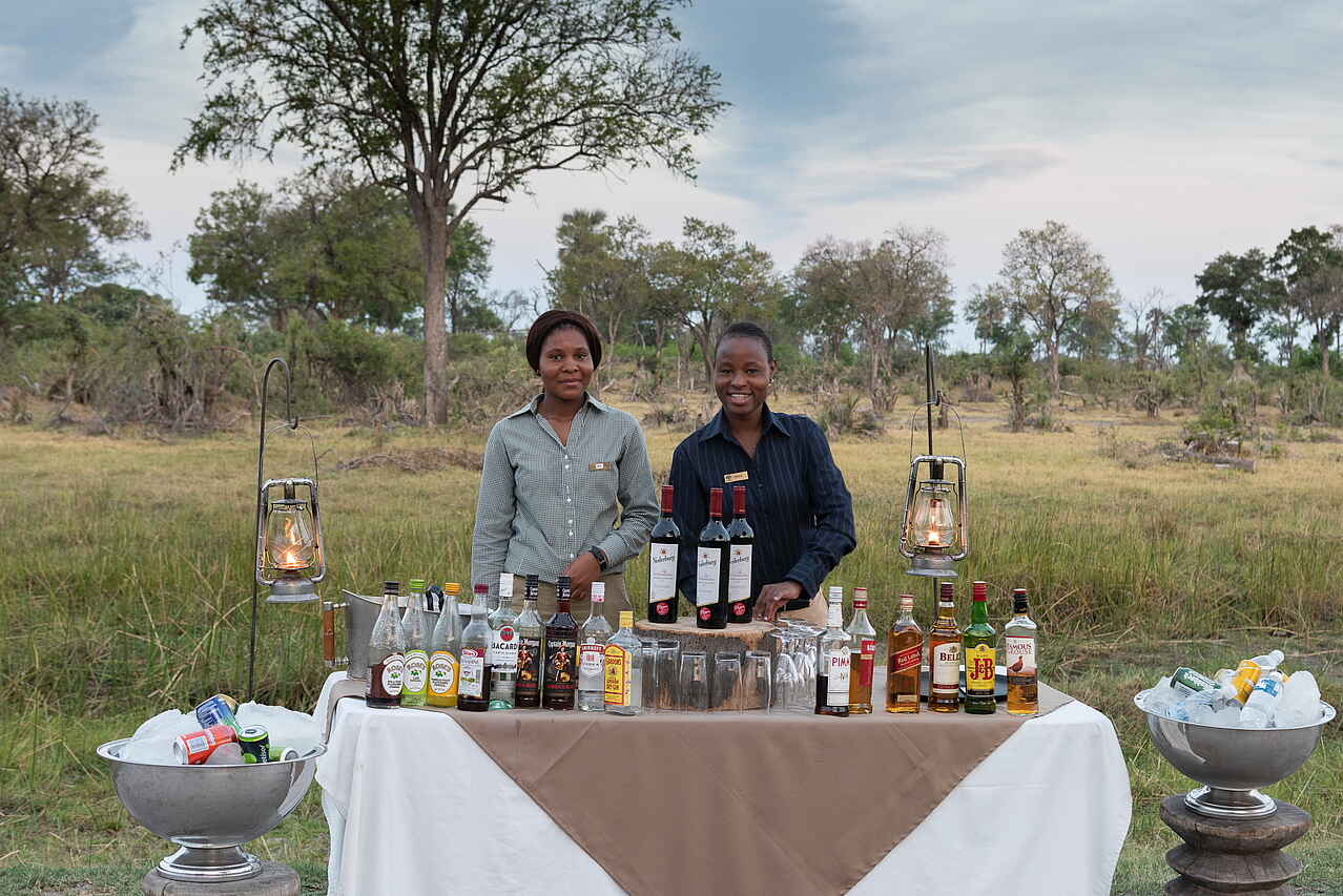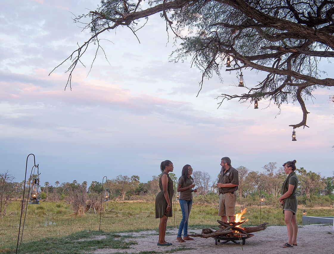 Je nach Wasserstand werden Mokorofahrten angeboten, die eine ruhige Annäherung an Wildtiere entlang der Kanäle erlauben. Geführte Buschwanderungen vermitteln Einblicke in Spuren, Pflanzen und kleinere Tierarten. Ergänzend können auf Wunsch In-Room-Spa-Treatments arrangiert werden und bieten entspannte Auszeiten in der eigenen Zeltsuite. Durch die private Nutzung des Camps lassen sich alle Aktivitäten auf Interessen, Altersstruktur und Tagesform der Gäste abstimmen.