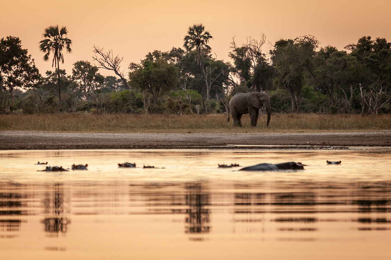 Das Gebiet rund um das Gomoti Private Camp zählt zu den wildreichen Regionen des westlichen Okavangodeltas. Elefanten und Büffel sind ganzjährig präsent und bewegen sich regelmäßig entlang des Flusslaufs. Löwen werden häufig beobachtet, ebenso Leoparden, die vor allem in den bewaldeten Bereichen vorkommen. Geparden sind saisonal anzutreffen, abhängig von Beutetierdichte und Wasserstand. Zu den weiteren Tierarten zählen Giraffen, Zebras, Lechwe-Antilopen, Kudus, Impalas sowie Flusspferde und Krokodile in den Wasserläufen. Auch Hyänen und Schakale sind Teil des Ökosystems. Die Vogelwelt ist ausgesprochen vielfältig, mit Eisvögeln, Reihern, Störchen und zahlreichen Greifvögeln. Durch die Kombination aus Wasser- und Landhabitaten sind Tierbeobachtungen ganzjährig möglich.