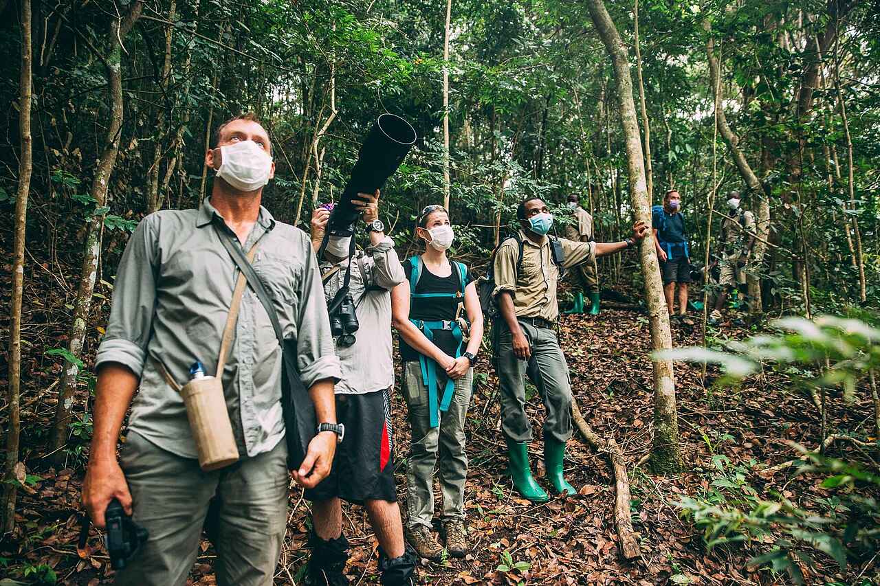 Die Hauptattraktion ist ohne Zweifel das Schimpansen-Trekking. In kleinen Gruppen begleiten Gäste erfahrene Guides und lokale Fährtenleser in den Bergregenwald, um die wild lebenden Schimpansen aufzuspüren. Die Wanderungen führen über steile, teils anspruchsvolle Pfade, erfordern eine gute Grundkondition und können mehrere Stunden dauern. Die Begegnungen mit den Tieren sind klar geregelt, um ihr Verhalten nicht zu stören, und bleiben dennoch eindrucksvoll und bewegend.