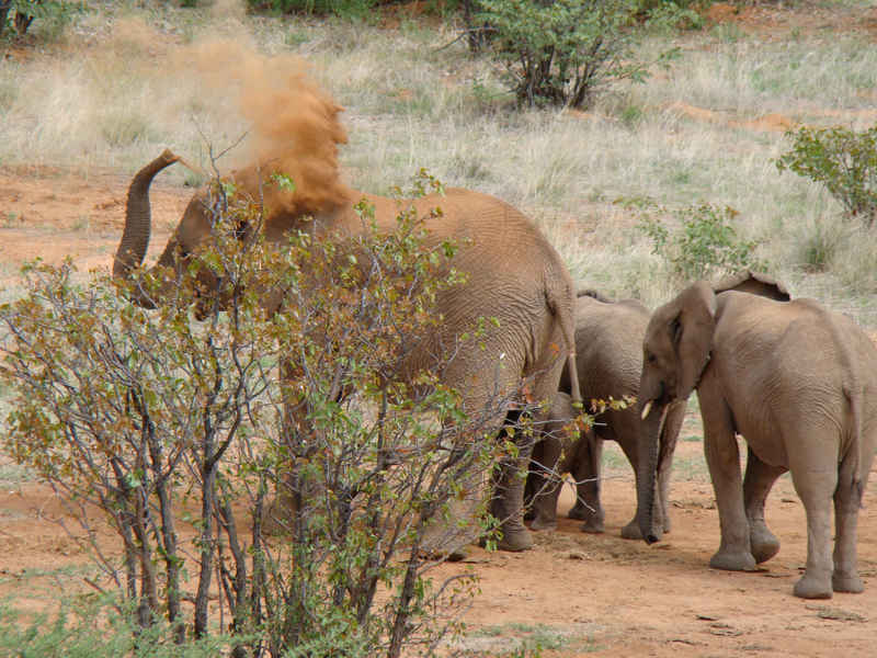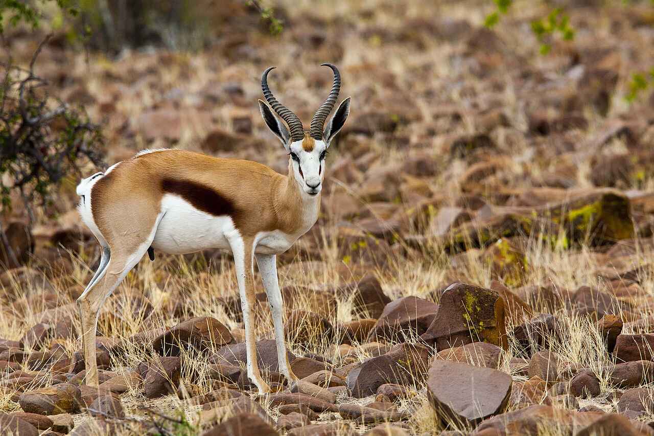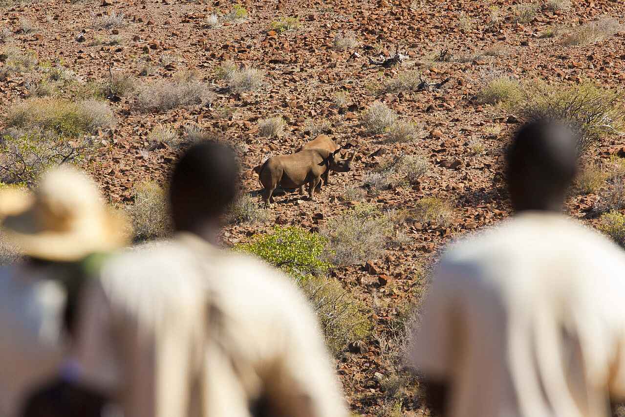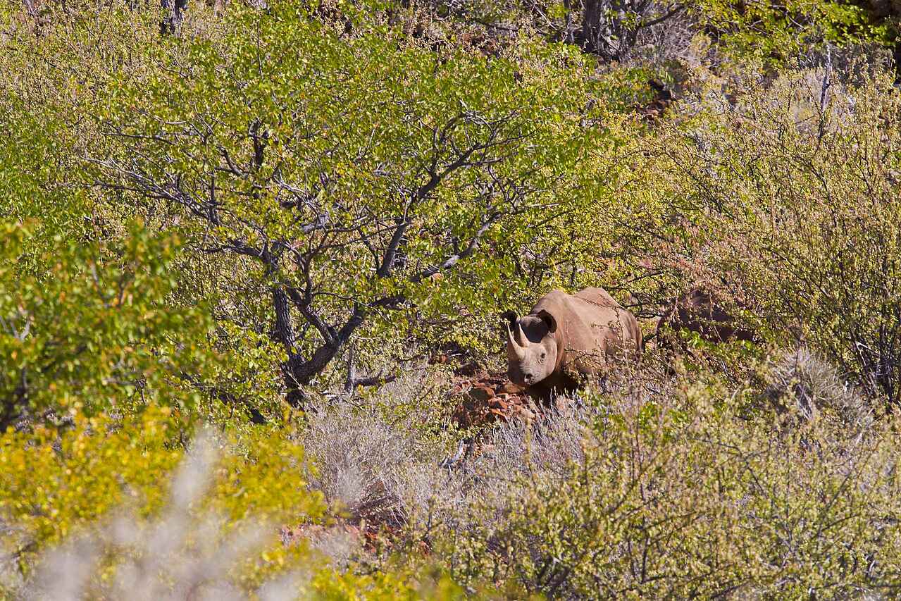 Nashörner, Wüstenelefanten, Springböcke, Kudus, Onyxantilopen, Klippspringer, Zebras, Löwen, Schwarzadler.