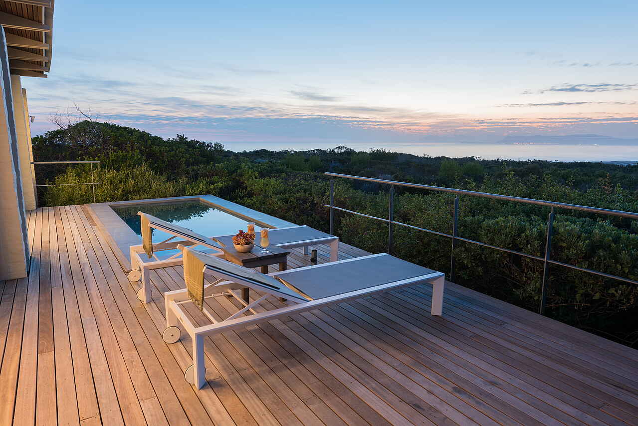 Die Grootbos Forest Lodge ist ein gelungenes Beispiel für Luxus-Ökotourismus. Sie liegt im Grootbos Privat Naturreservat am südafrikanischen Westkap. Ihre 16 freistehenden Suiten sind eingebettet zwischen dem uralten Milkwood-Wald und dem wunderschönen Kap-Fynbos, umrahmt von Hügeln und majestätischen Bergen. Die Lodge bietet nicht nur luxuriöse Unterkünfte inmitten der Natur, sondern auch einzigartige Naturerlebnisse. Alle Suiten haben große, vollständig zu öffnende Fensterfronten, die die Walker Bay überblicken. Mit etwas Glück lassen sich Wale direkt von der eigenen Veranda aus beobachten.
