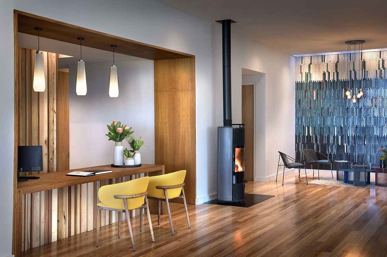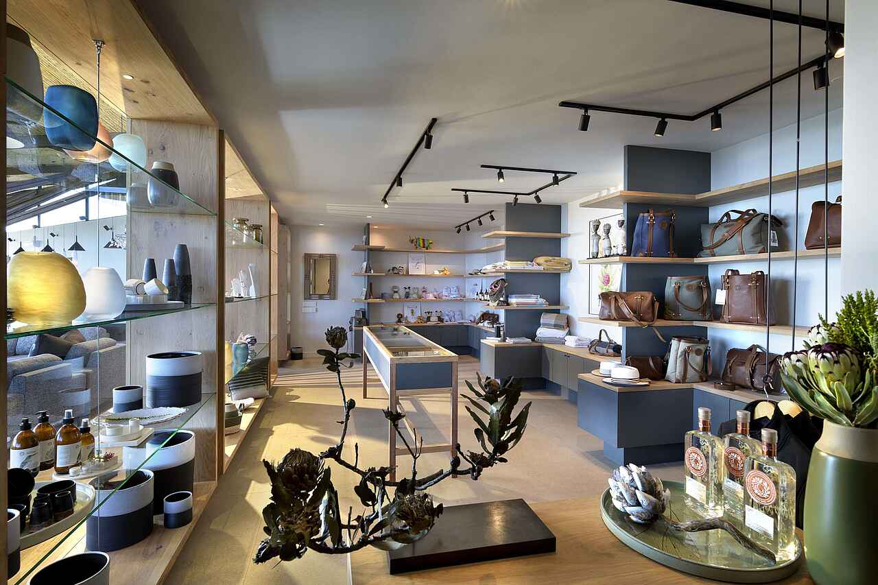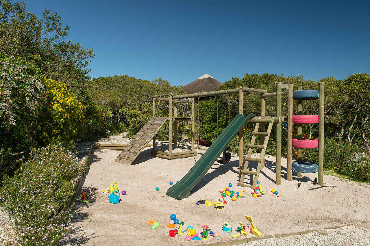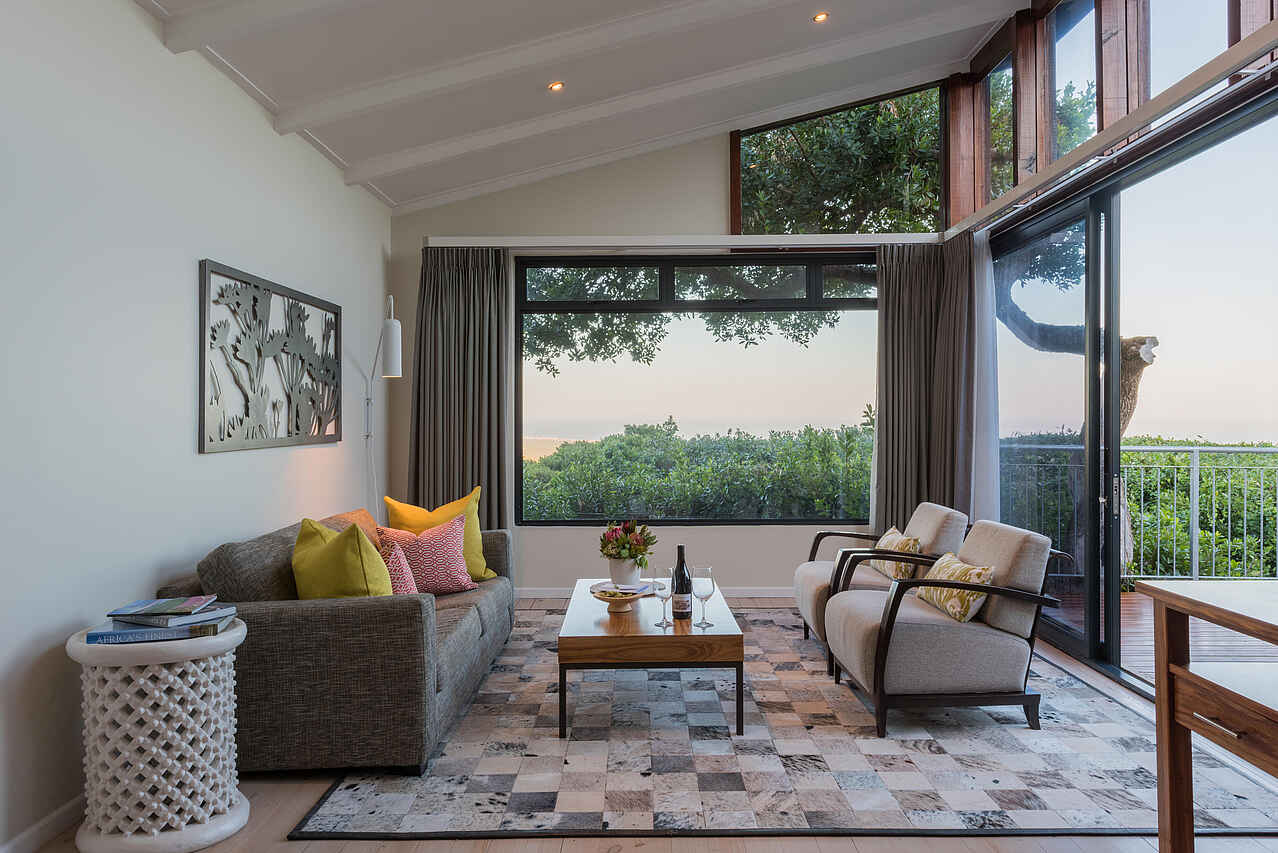 Das Herzstück der Lodge ist die lichtdurchflutete Lounge mit bodentiefen Fenstern und Kamin, die nahtlos in das Restaurant übergeht. Von der Terrasse mit Infinity-Pool fällt der Blick über das Meer. Ein stilvoller Weinkeller bietet den Rahmen für besondere Abendessen, während eine offene Feuerstelle an afrikanische Boma-Tradition erinnert. Ergänzt wird das Angebot durch ein Spa mit Behandlungsräumen und Sauna. Kinder finden in einem kreativen Indoor-Spielzimmer und im Garten viele Möglichkeiten zum Entdecken. Alle Bereiche sind so gestaltet, dass sie Natur, Entspannung und Begegnung harmonisch verbinden.