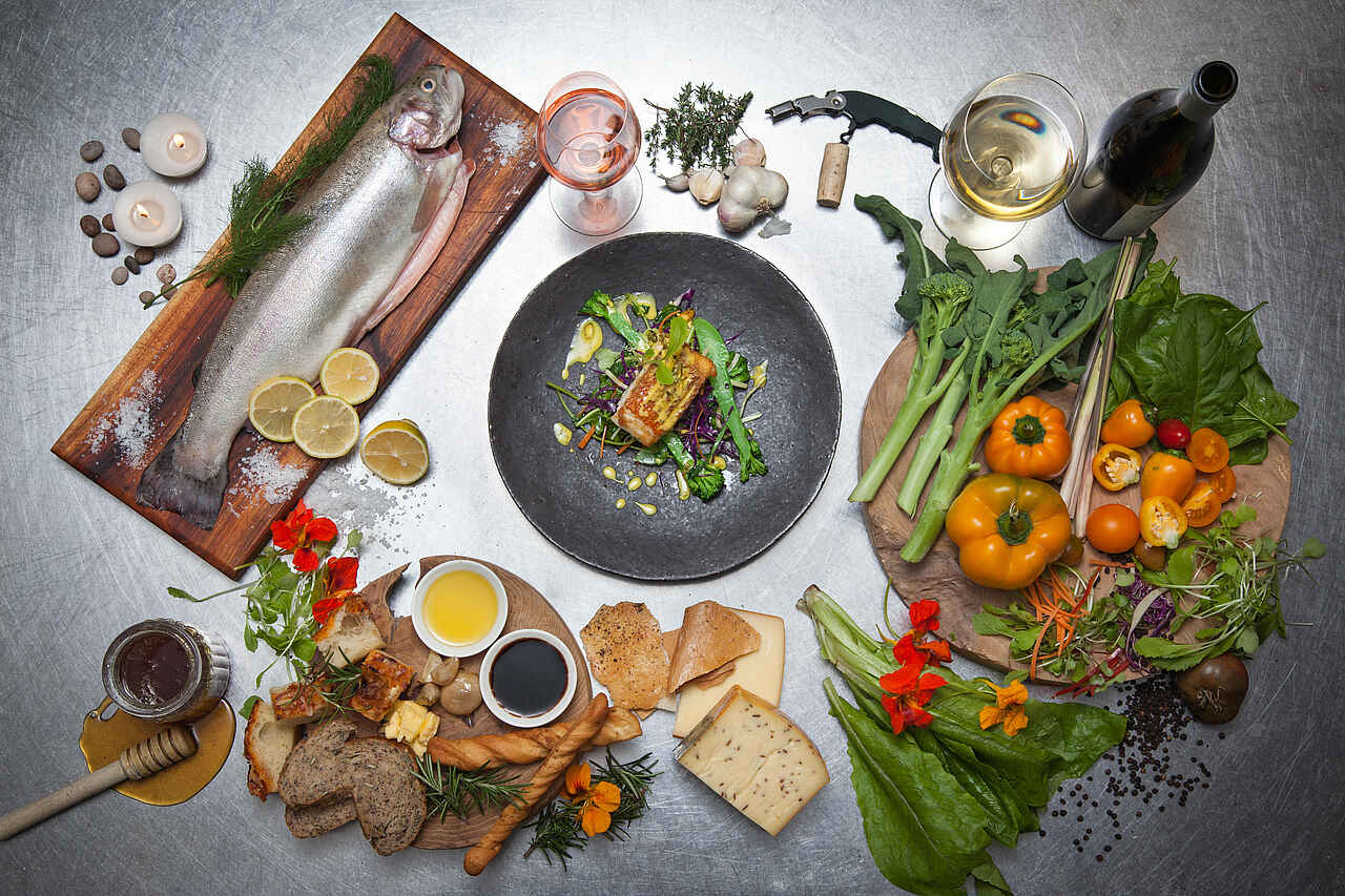 Kulinarisch erwartet die Gäste ein Mix aus regionalen Produkten und international inspirierten Gerichten. Serviert wird im Restaurant mit Panoramablick, im Weinkeller oder unter freiem Himmel an der Feuerstelle. Frischer Fisch und Meeresfrüchte aus der Walker Bay, Fleisch aus der Region und Gemüse aus nachhaltigem Anbau stehen auf der Karte. Frühstück, Mittagessen und Abendessen sind inklusive, dazu gibt es eine feine Auswahl südafrikanischer Weine. Auf Wunsch werden auch besondere Diäten oder private Dinner-Erlebnisse arrangiert.