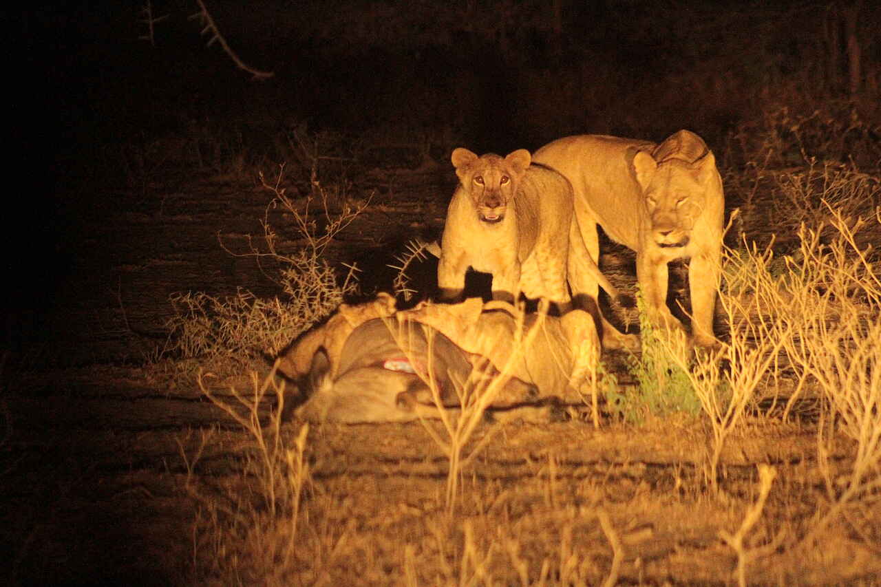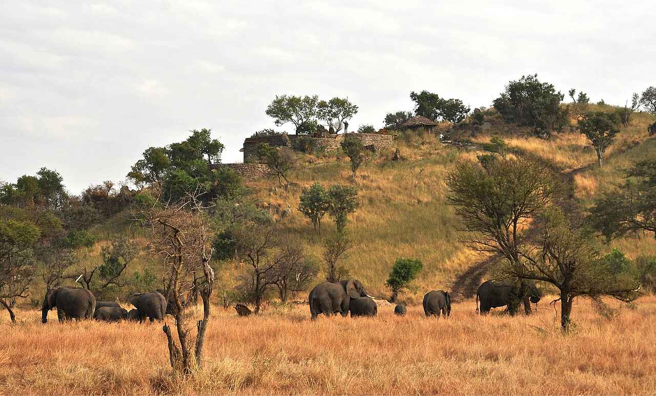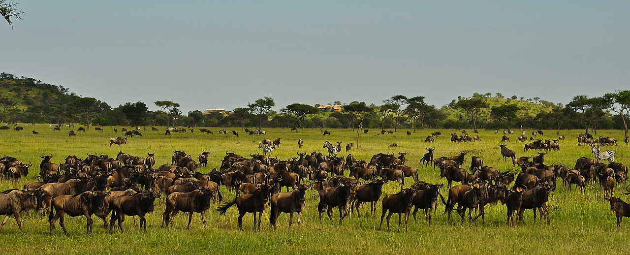 Elefanten, Büffel, Löwen, Hyänen und Vogelstrauße. Außerdem zeigen sich ganzjährig Giraffen, Impalas und Topis. Die große Wanderung der Gnu- und Antilopenherden kann beobachtet werden.