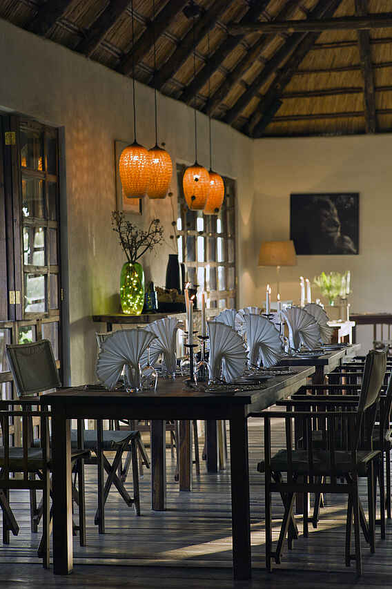 Vollpension: Frühstück, Lunch und täglich wechselndes 4-Gänge Dinner. Nach Absprache besteht eine vegetarische Option und auch andere Diätwünsche können berücksichtigt werden. Lunch kann auch im Busch eingenommen werden.