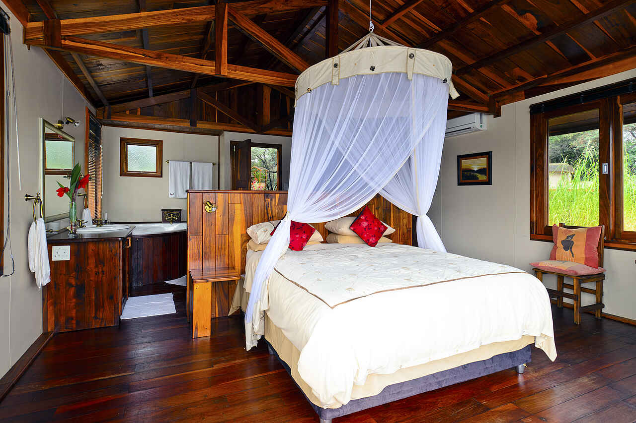Chalets mit privater Veranda, Klimaanlage, Kühlschrank, einem Tee- und Kaffeezubereiter und elektronischem Safe. Die Betten sind mit Moskitonetzen versehen. Das schwimmende Chalet ist zusätzlich mit einem Eckbad und einer chemischen Toilette ausgestattet.