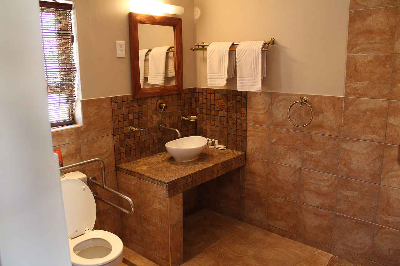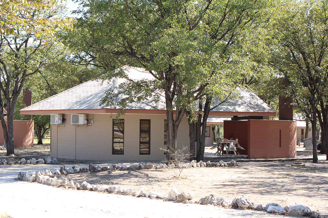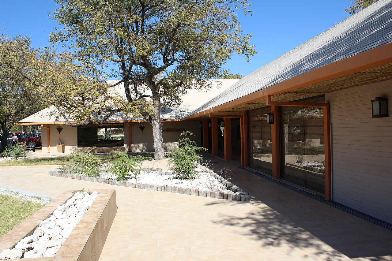 Auf dem weitläufigen Gelände befinden sich ein Restaurant, eine Bar, Einkaufsmöglichkeiten und ein Swimming Pool und ein zur Tierbeobachtung geeignetes Wasserloch.