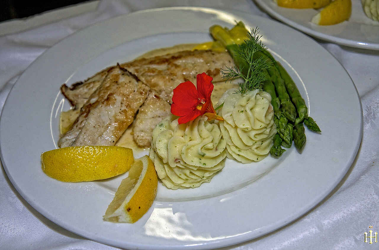 Das Restaurant im Hansa Hotel ist luxuriös und das Essen exzellent. Zum Frühstück isst man vom Buffet. Lunch gibt es auf der Terrasse, Abendessen im Speisesaal. Hier sitzt man an pompös gedeckten Tischen und lauscht Klaviermusik. Frische Früchte und Delikatessen wie Austern sind an der Tagesordnung, die Auswahl ist enorm und das Auge isst hier wahrlich mit.